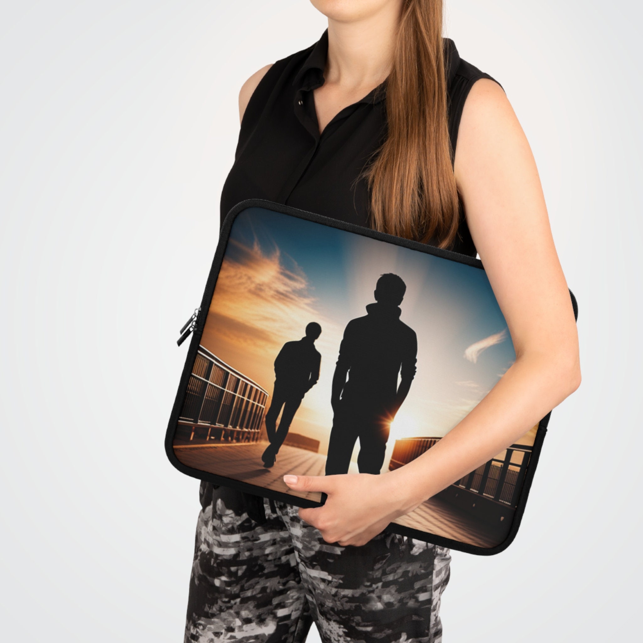 Made for transferring laptops in the coolest way possible, this personalized laptop sleeve is a dream come true for anyone working on the go or traveling. Featuring a black polyester back, a water-resistant construction, and dual zipper enclosures, this personalized laptop sleeve case is available in 7” sizes up to 17”.