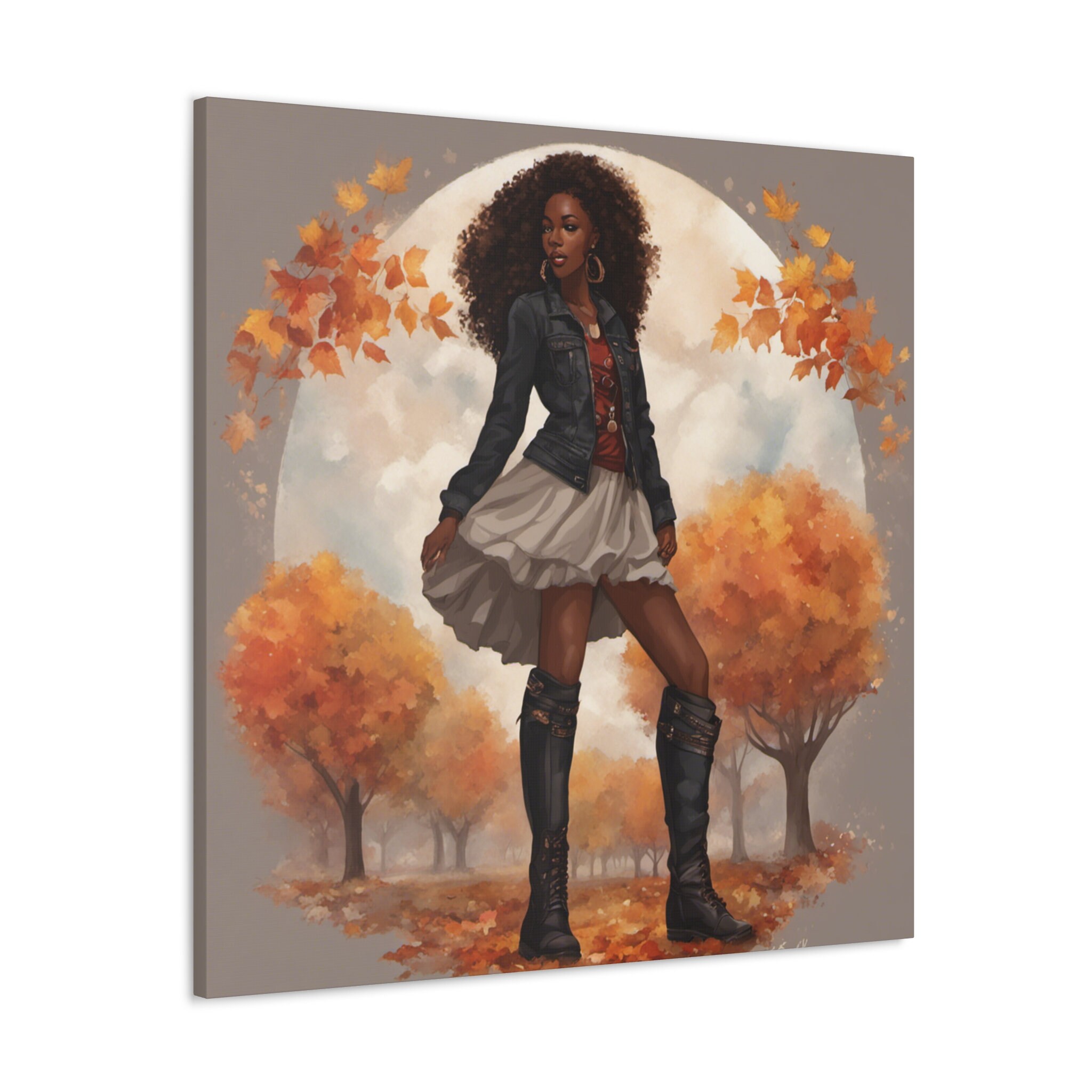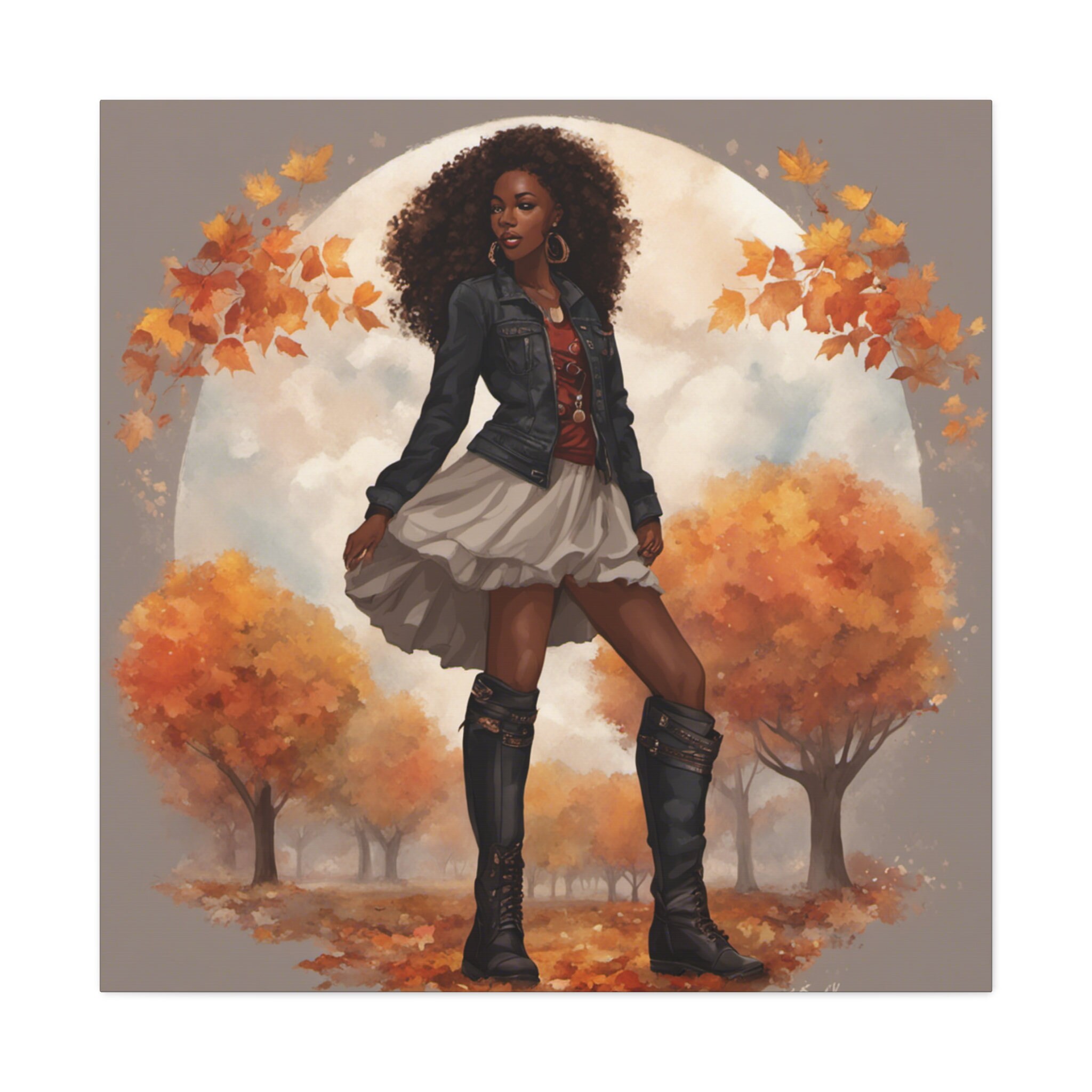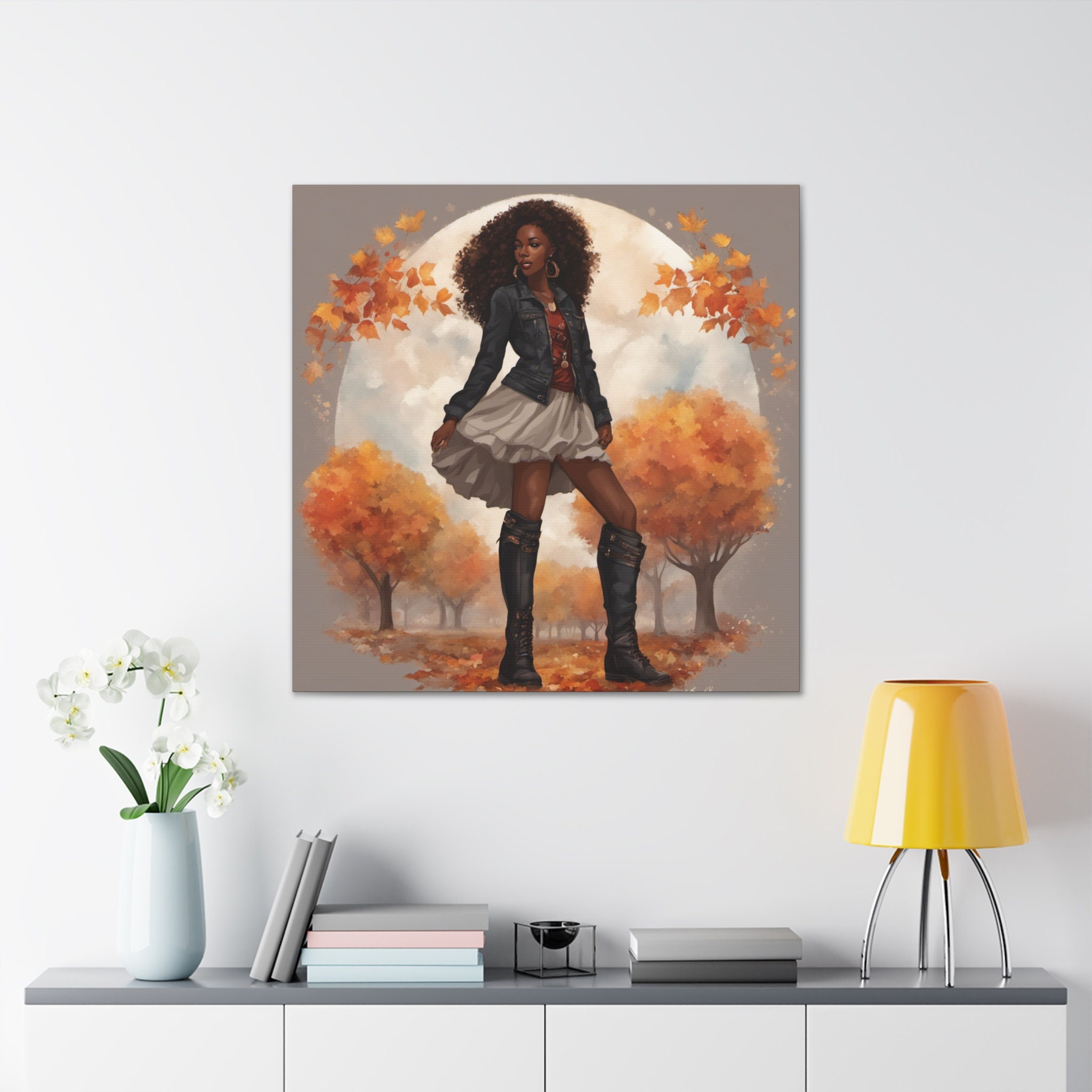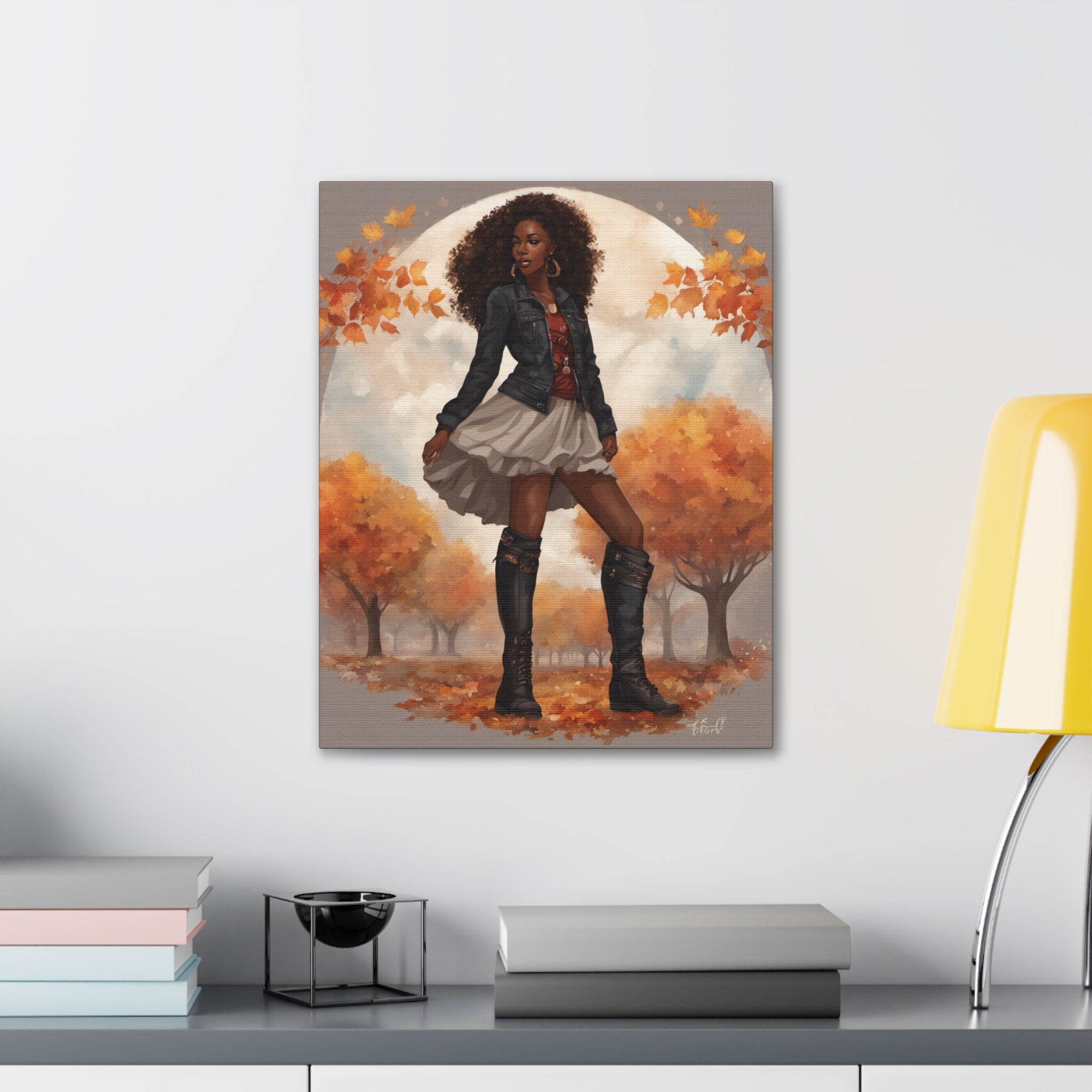 Fall Fashion Girl Canvas Print, Autumn Landscape Decor