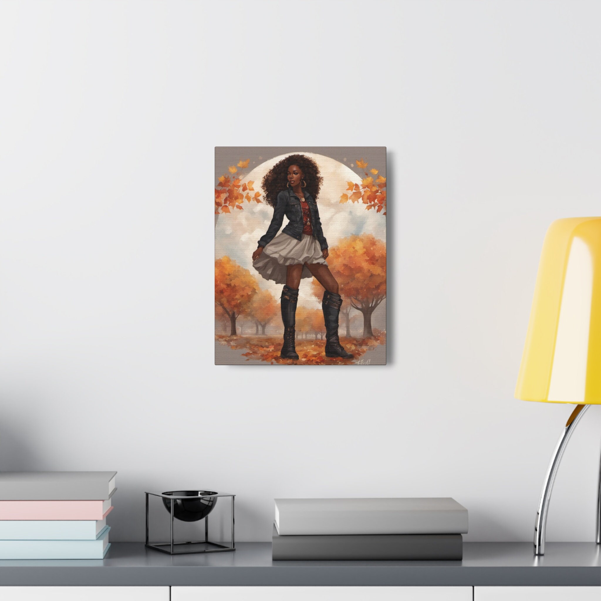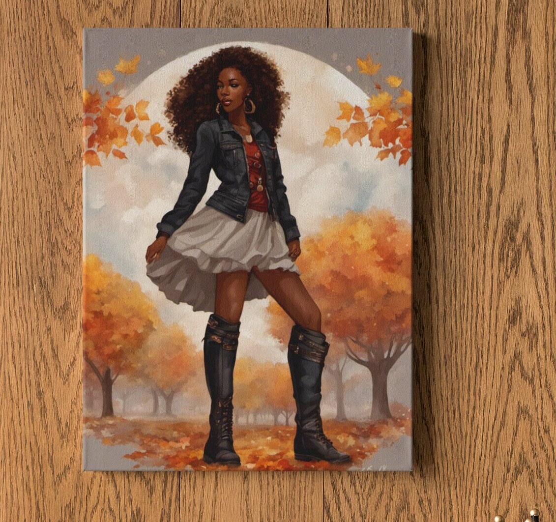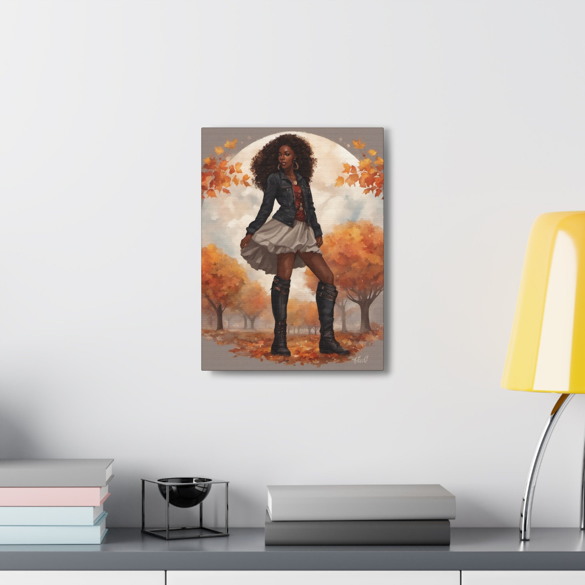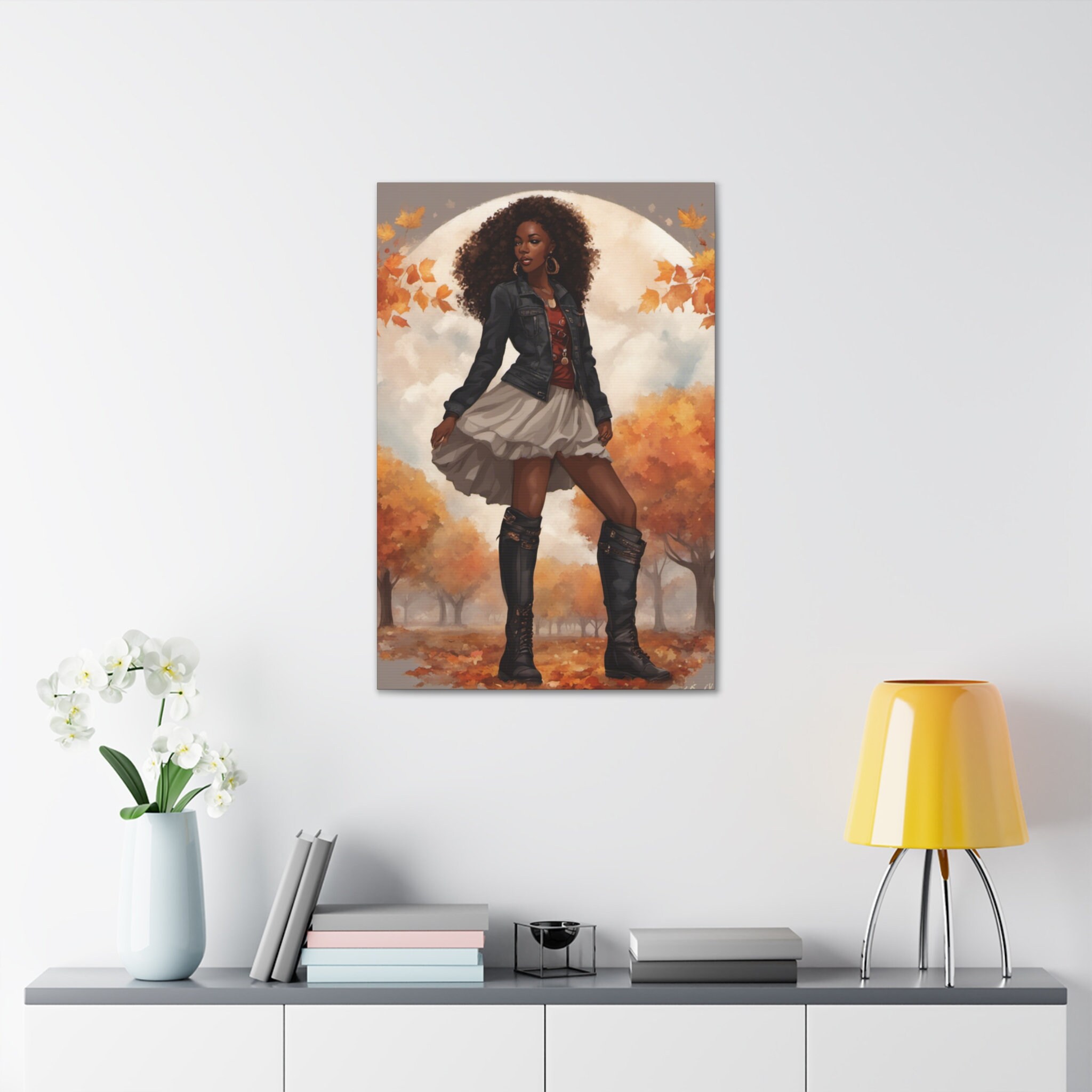 Fall Fashion Girl Canvas Print, Autumn Landscape Decor