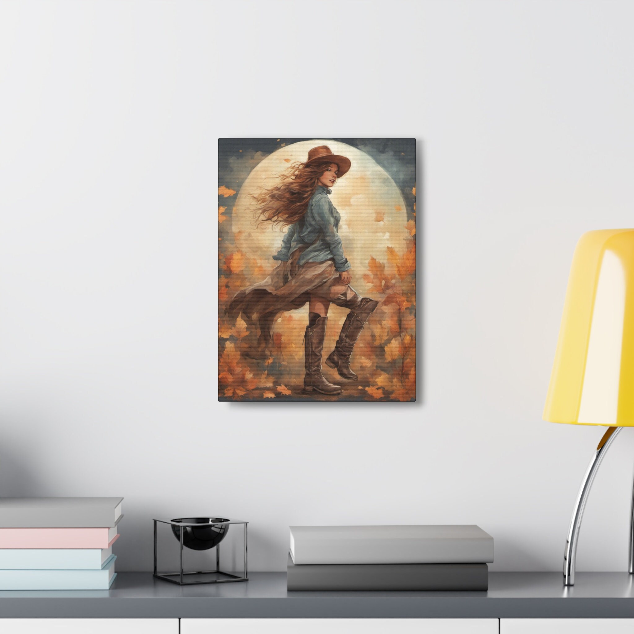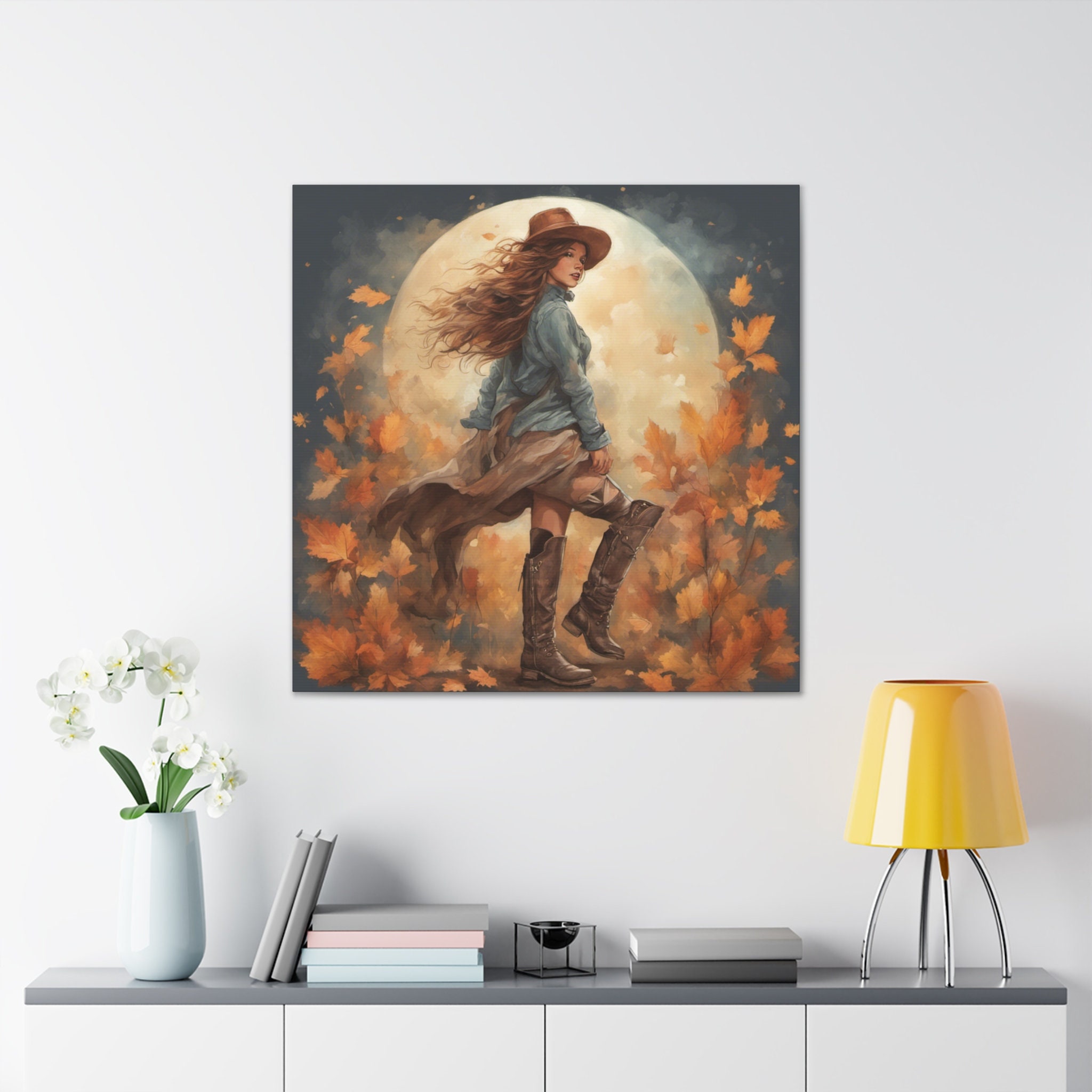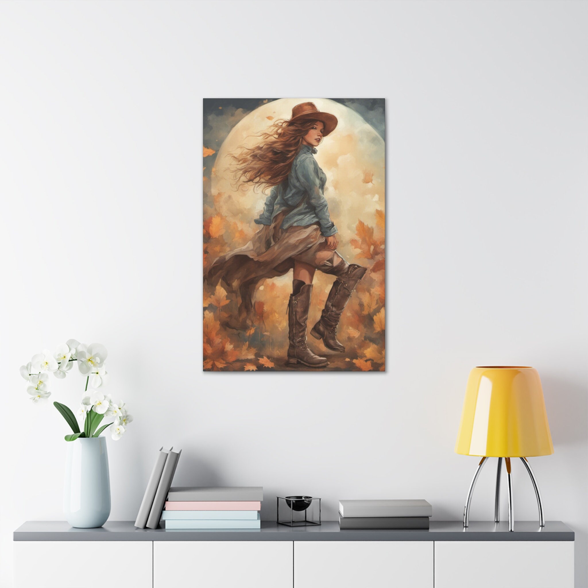 Autumn Girl in Boots Canvas Print, Fall Decor
