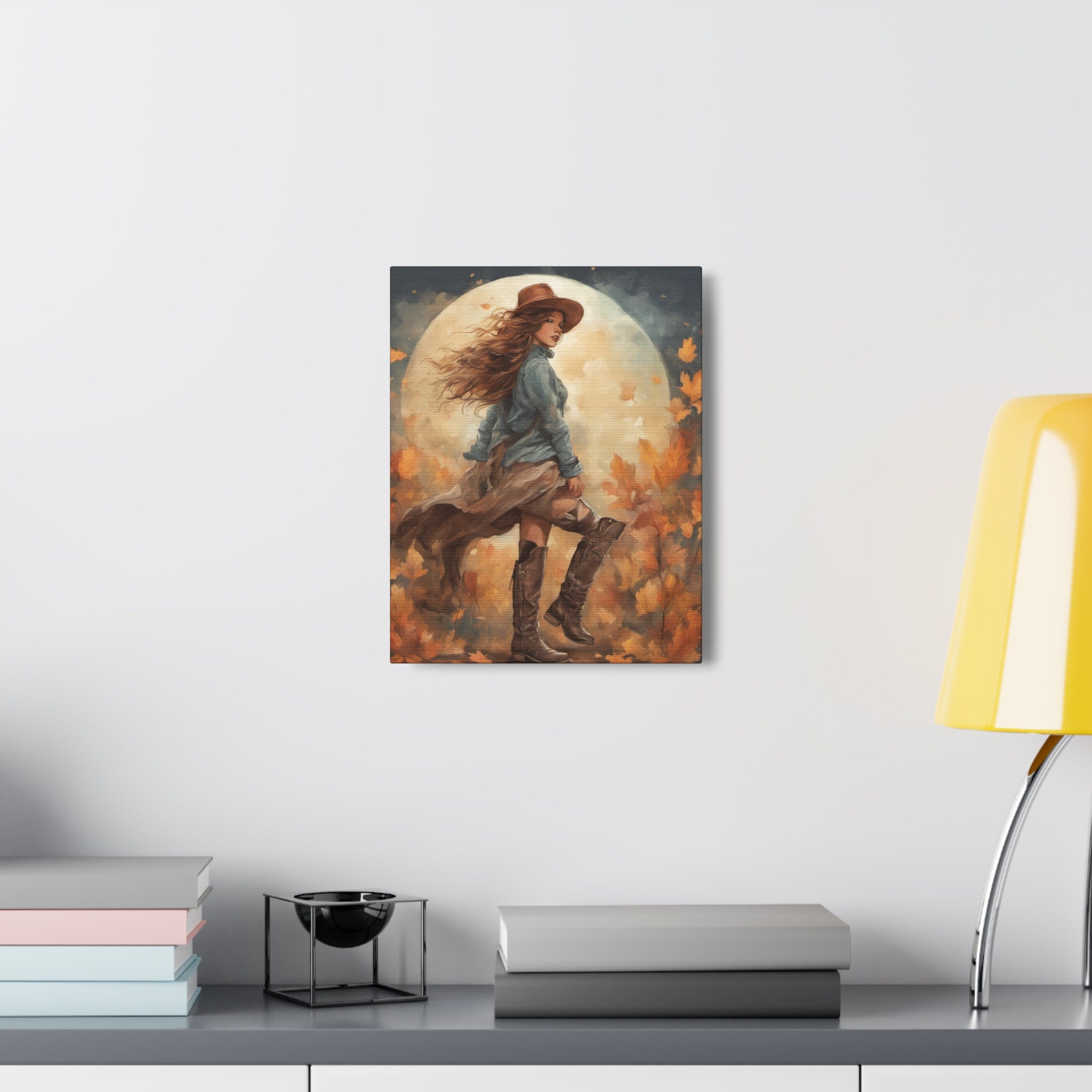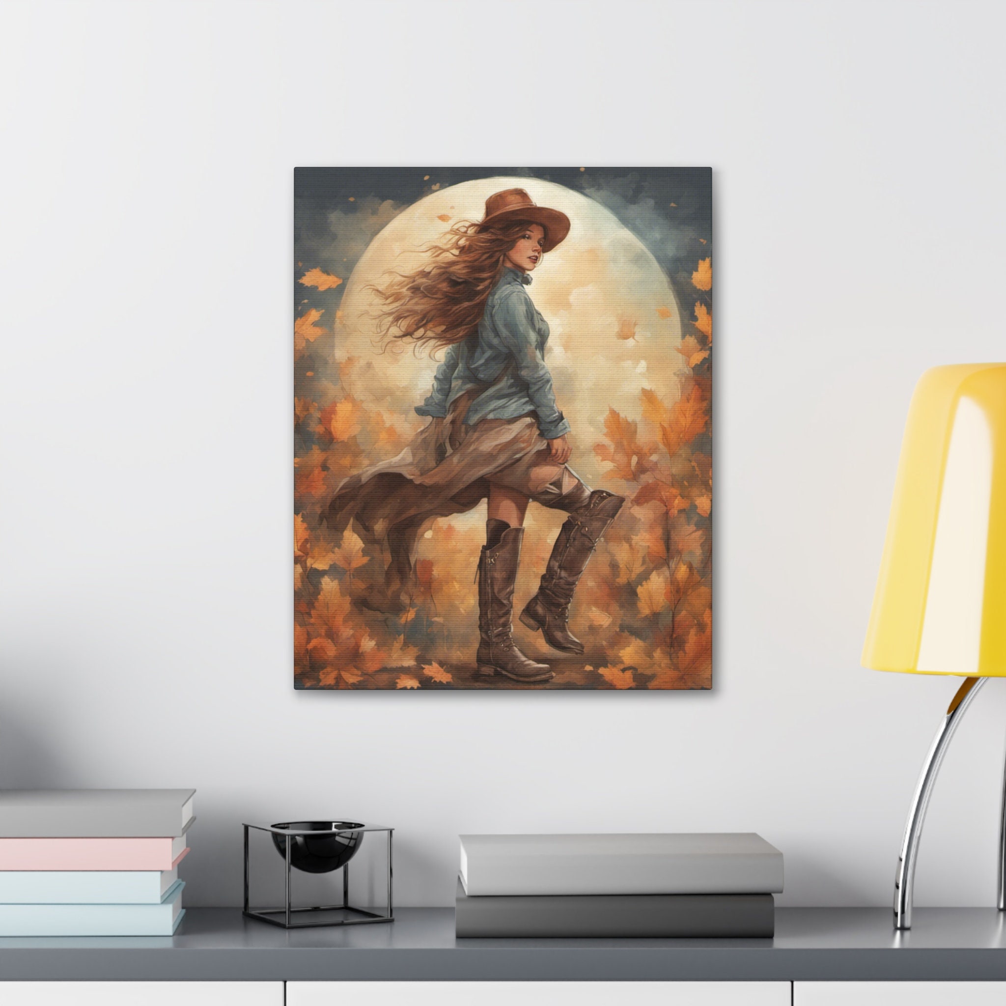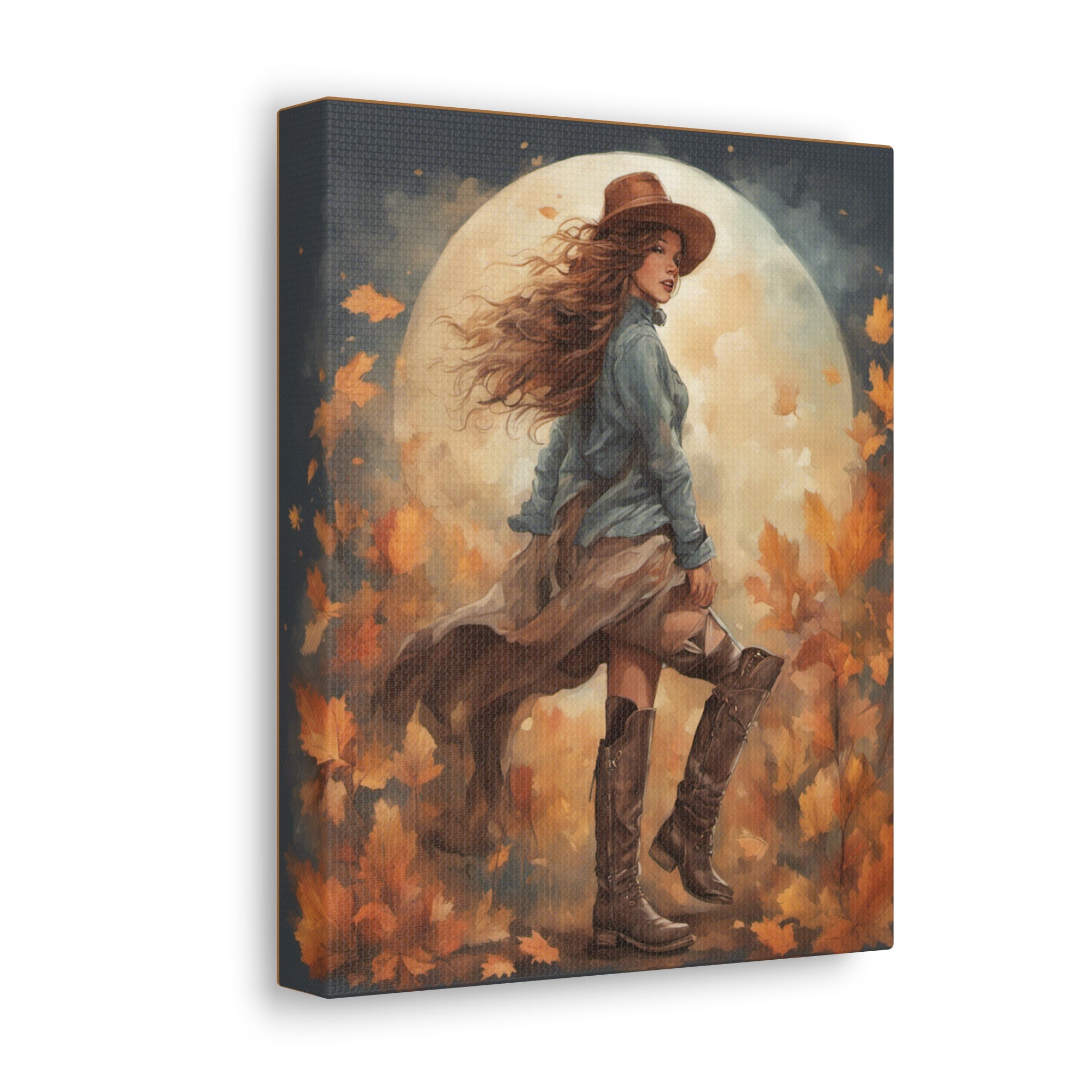 Autumn Girl in Boots Canvas Print, Fall Decor
