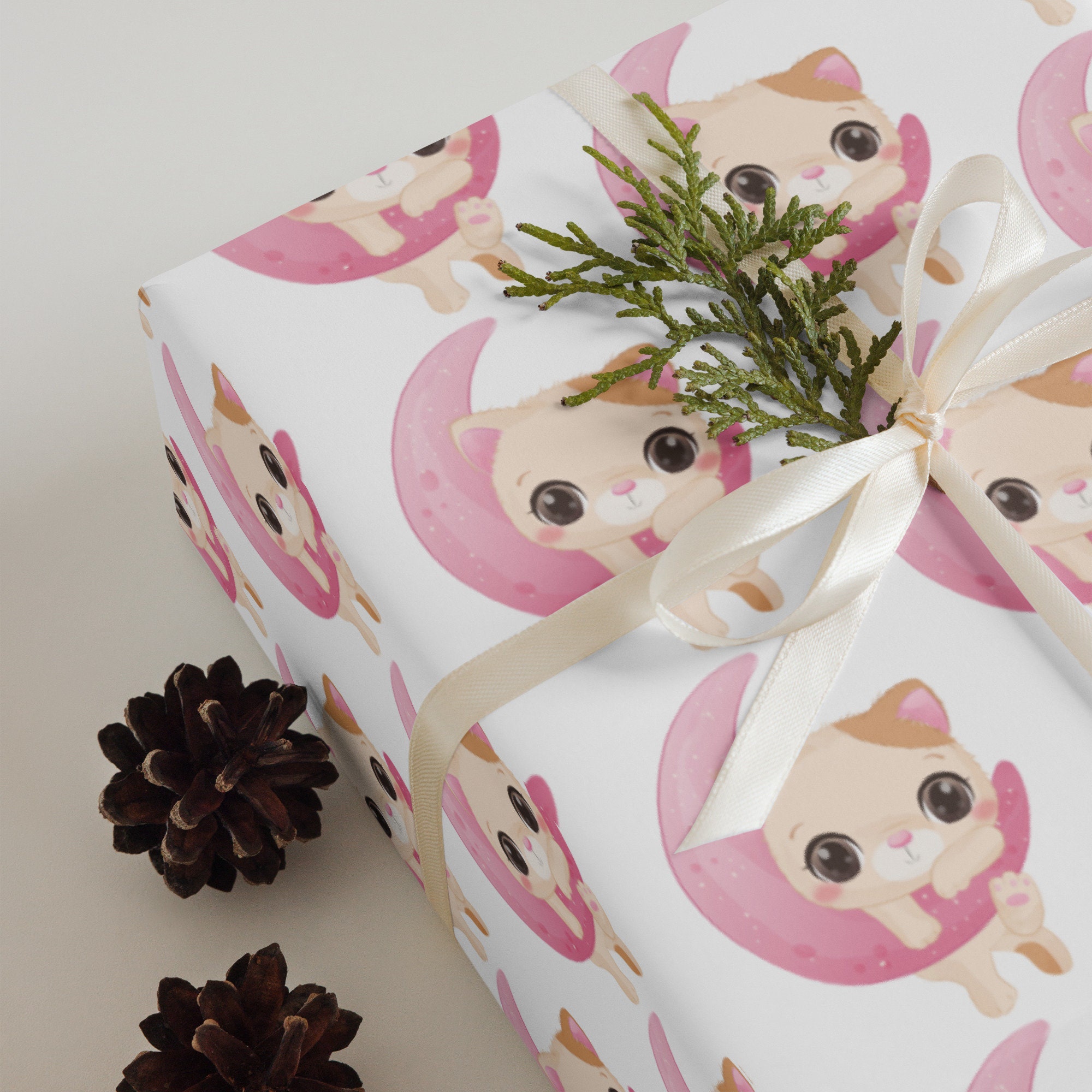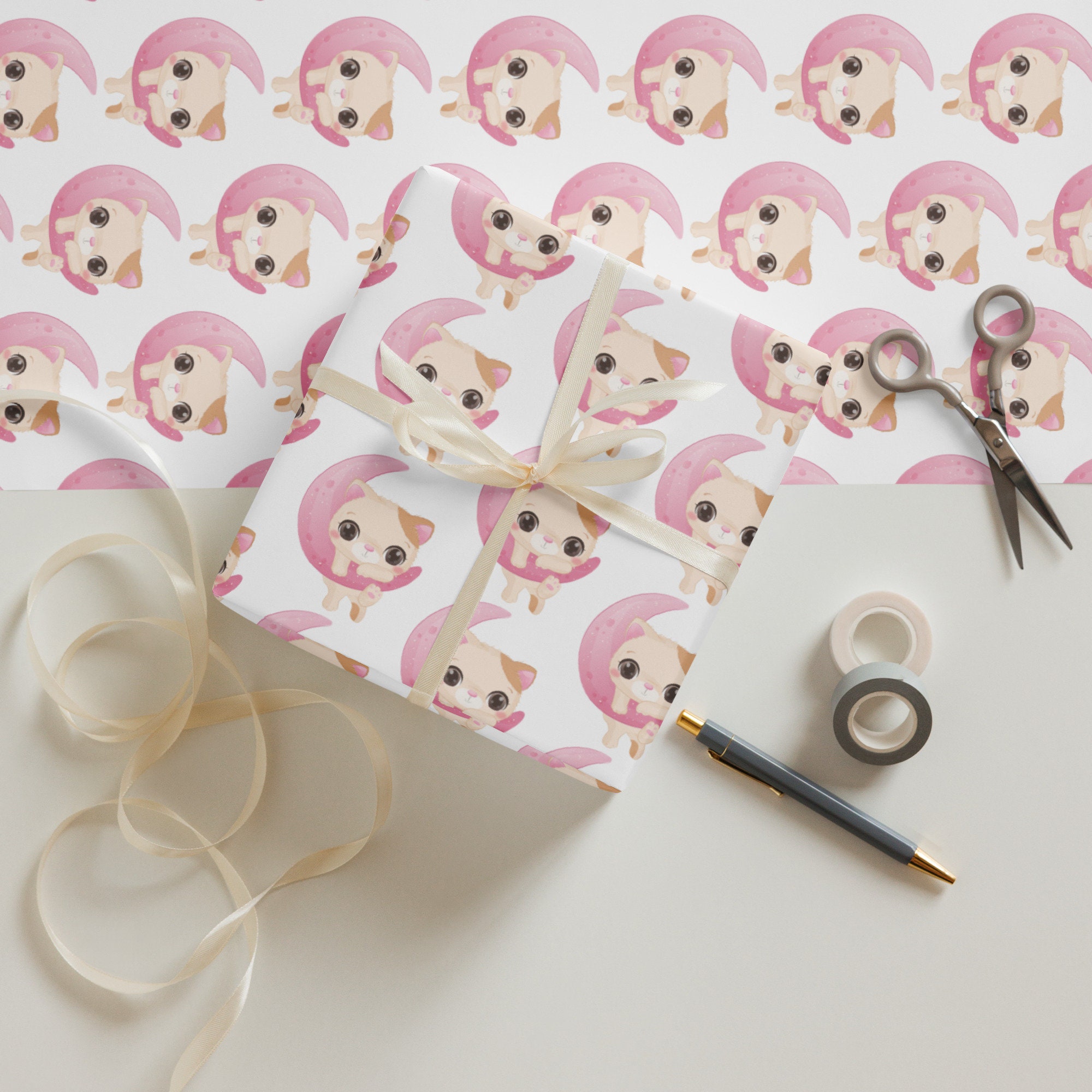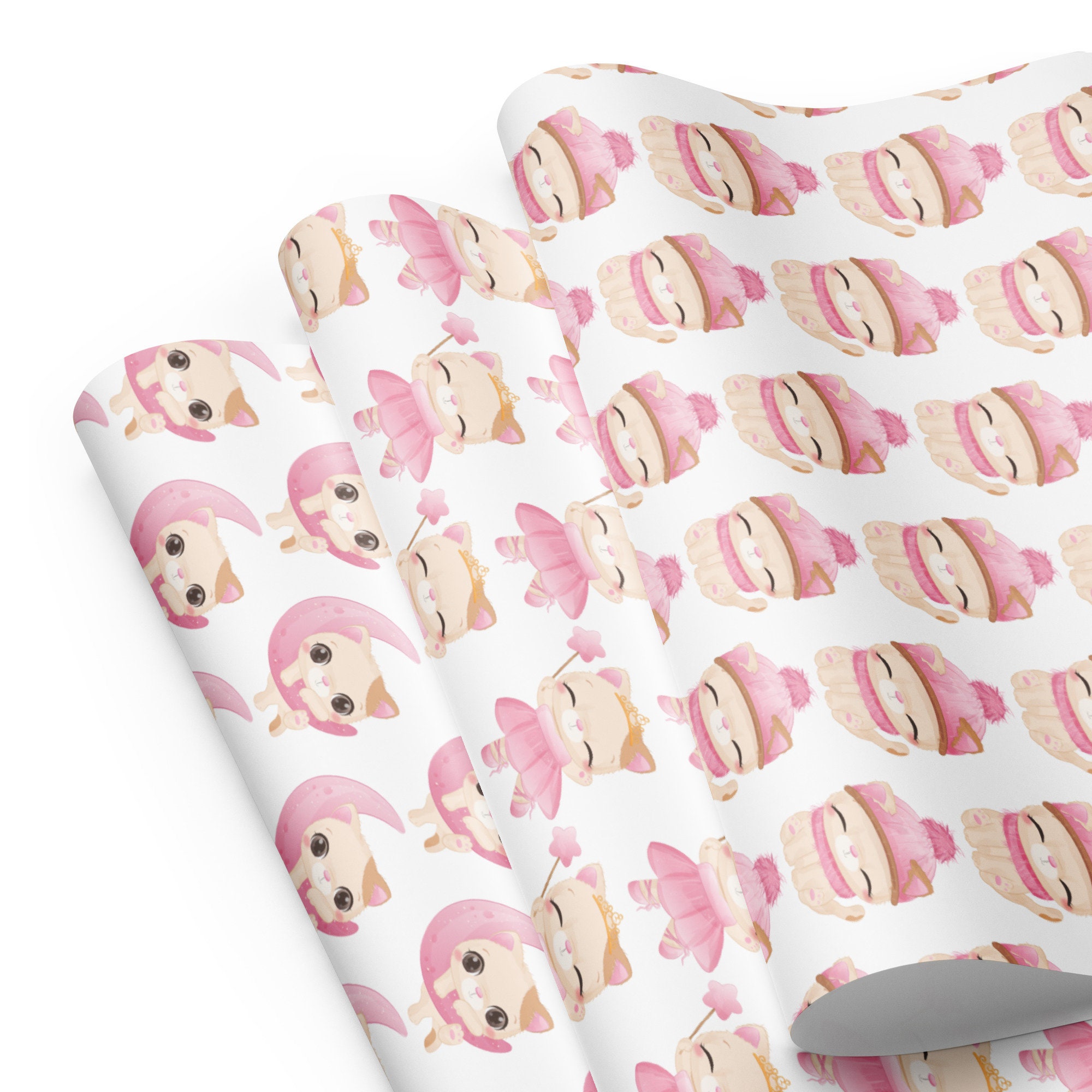 Pink Fairy Cat Wrapping Paper, Birthday Gift Wrap (Set of 3)