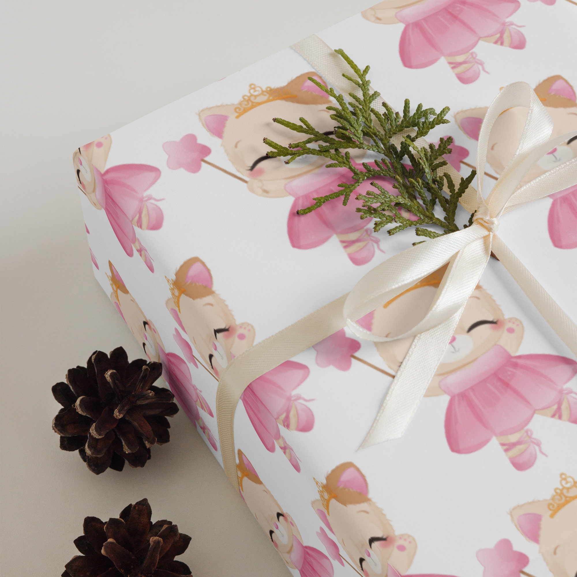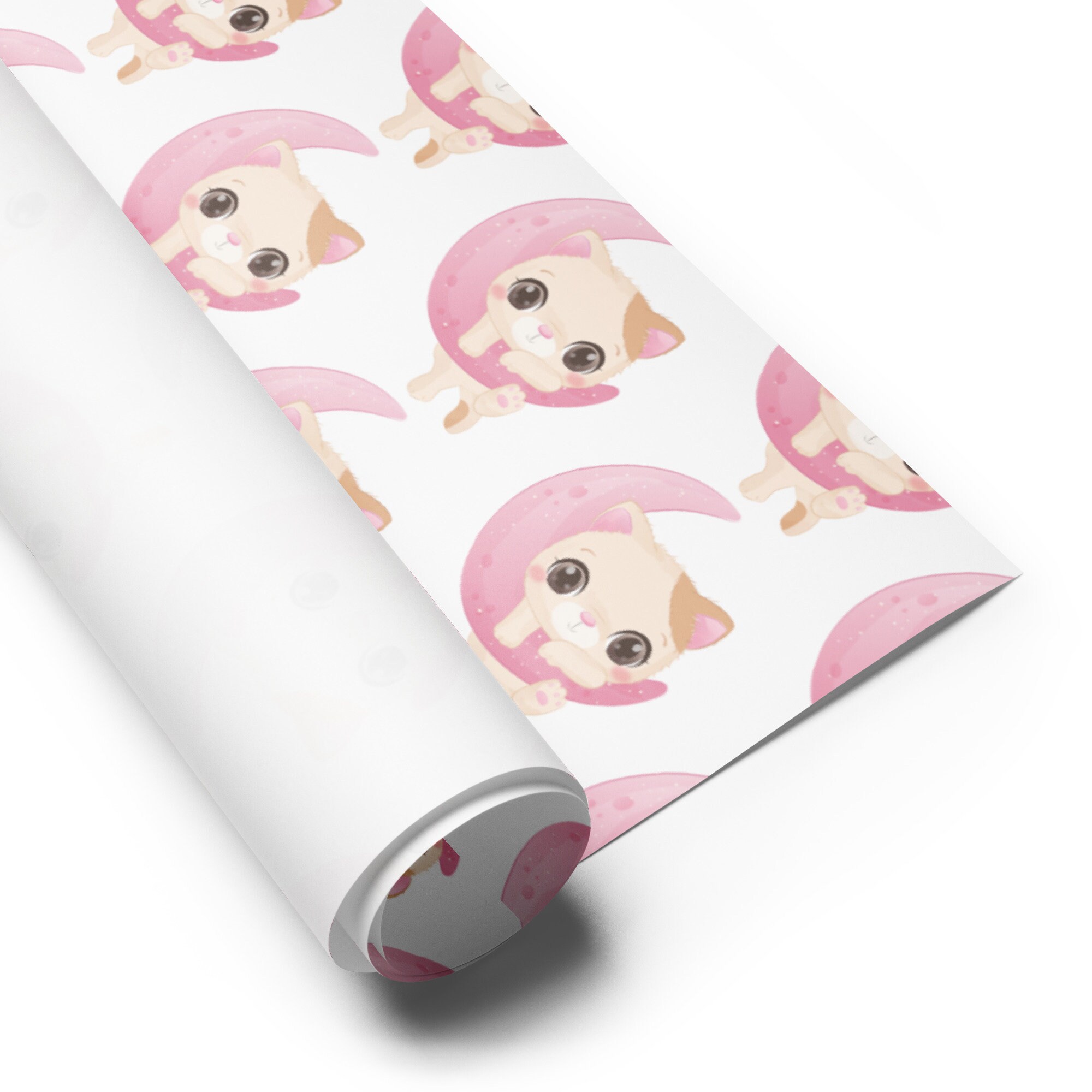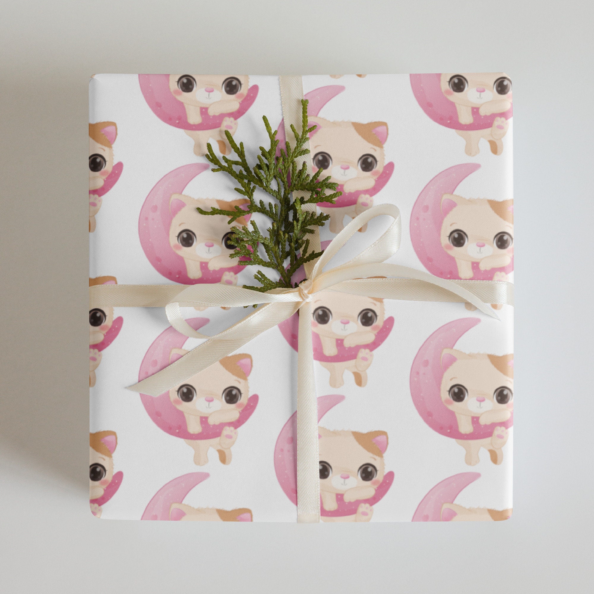 Pink Fairy Cat Wrapping Paper, Birthday Gift Wrap (Set of 3)