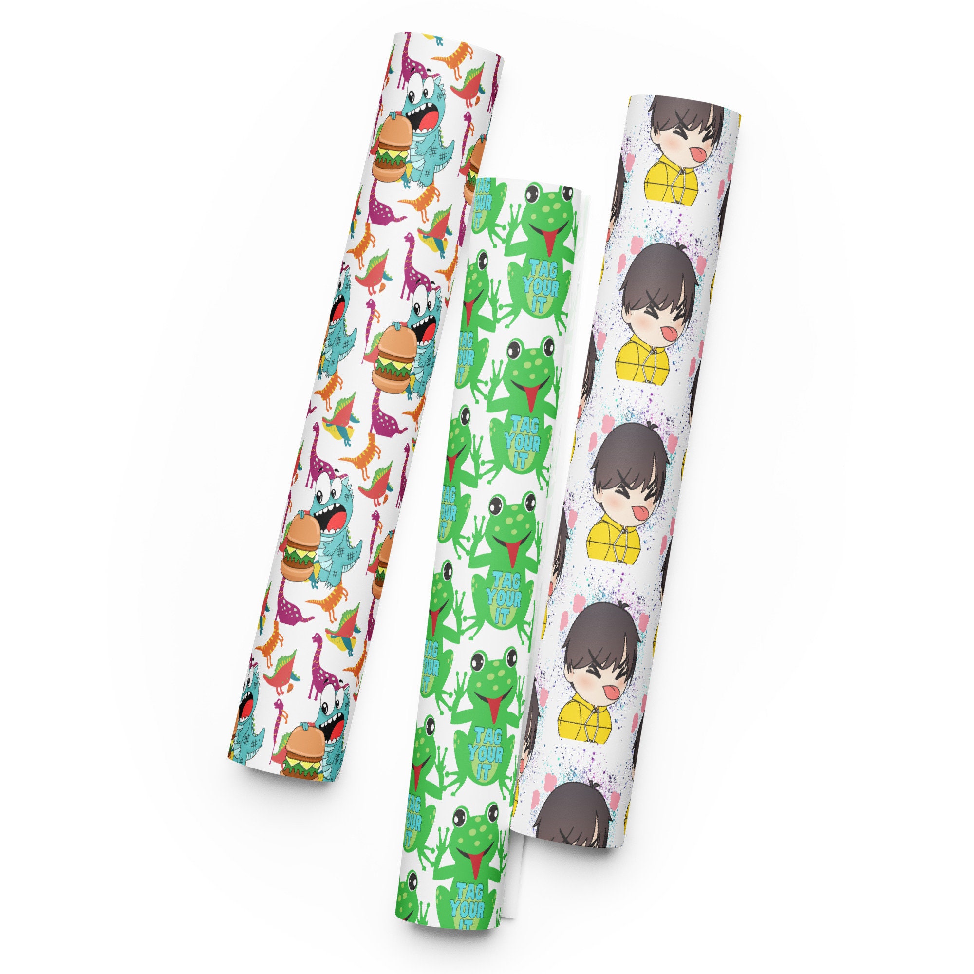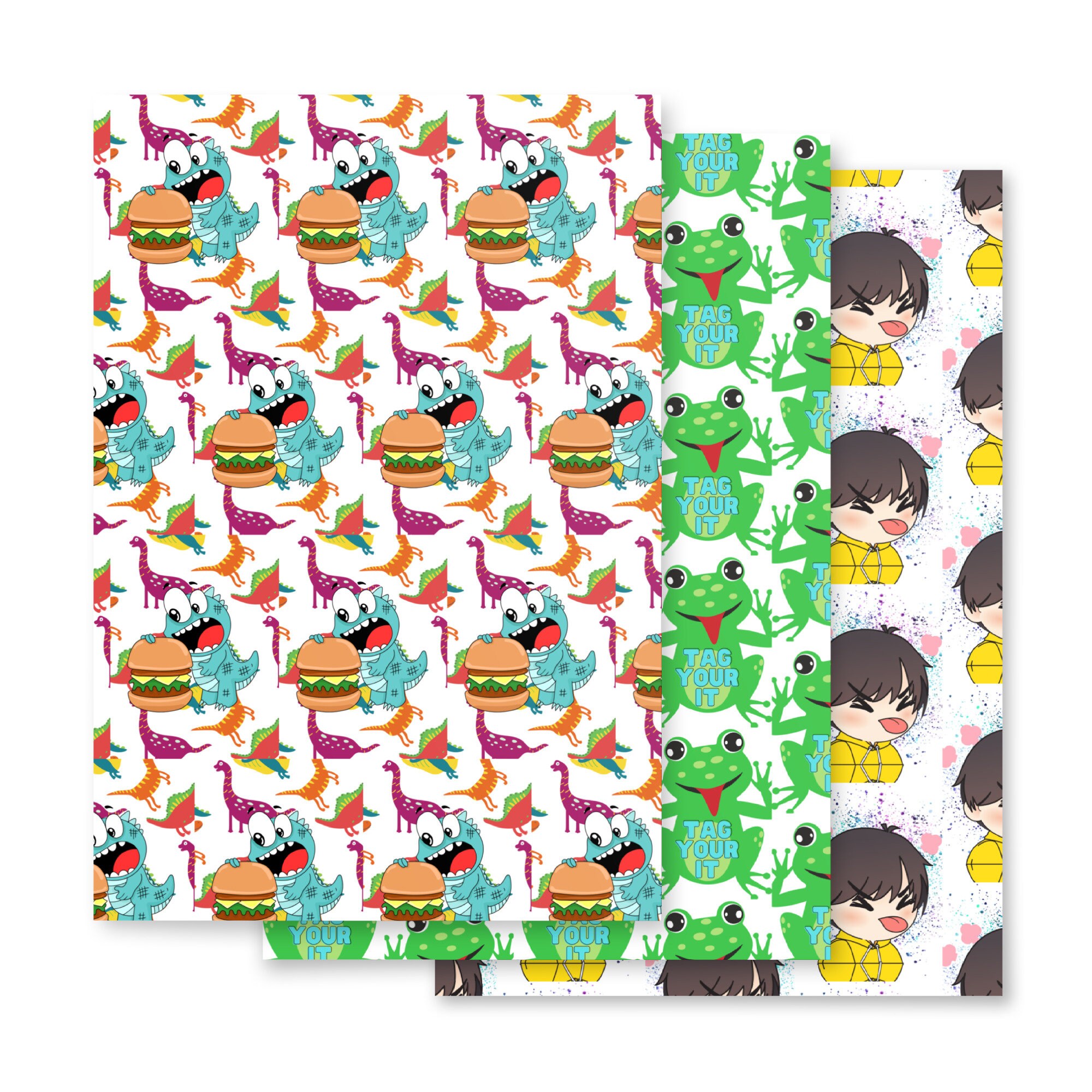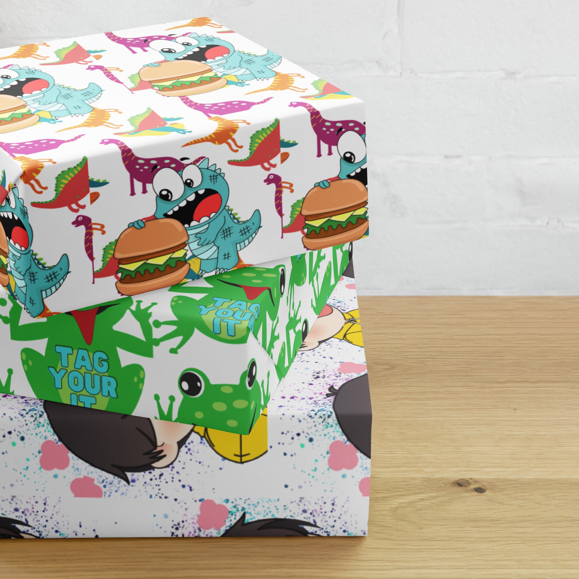 Dinosaur and Frog Gift Wrap, Kids Birthday, Set of 3
