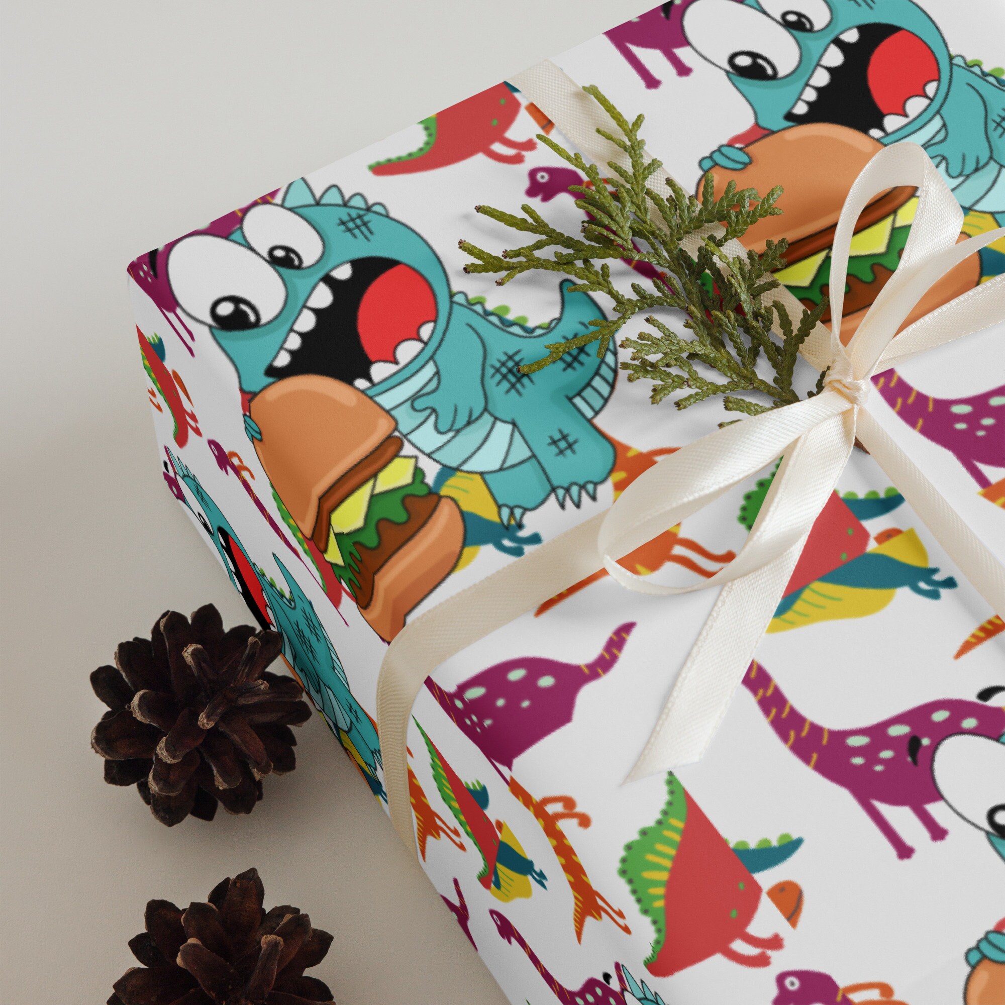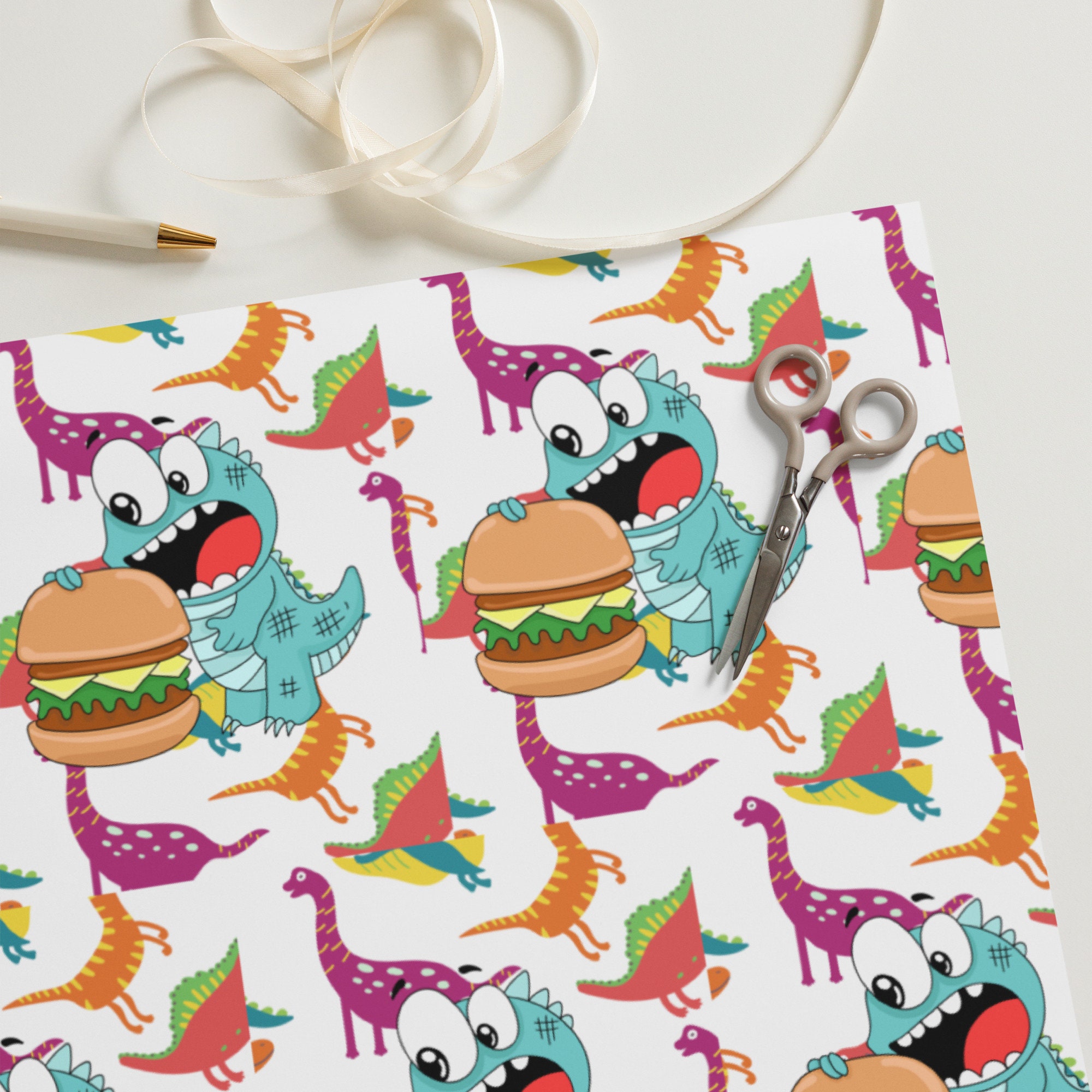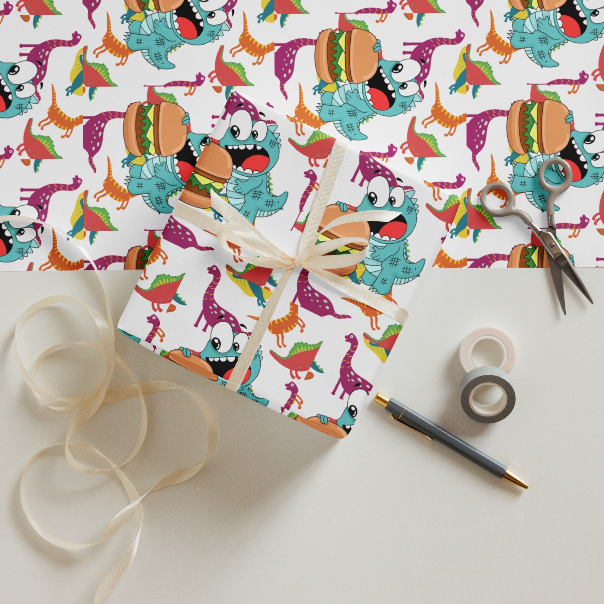 Dinosaur and Frog Gift Wrap, Kids Birthday, Set of 3