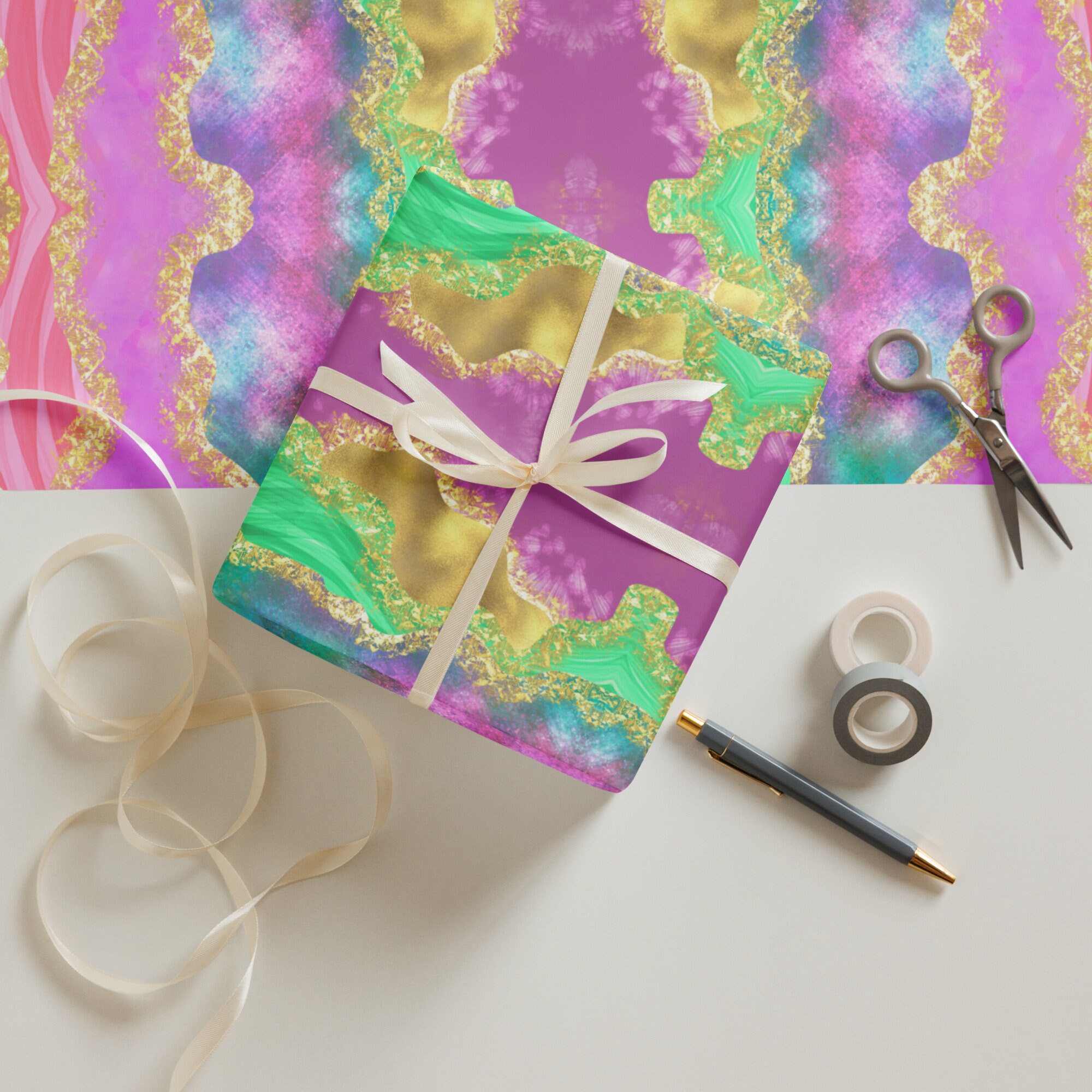 Rainbow Abstract Wrapping Paper Sheets, Contemporary Gift Wrap
