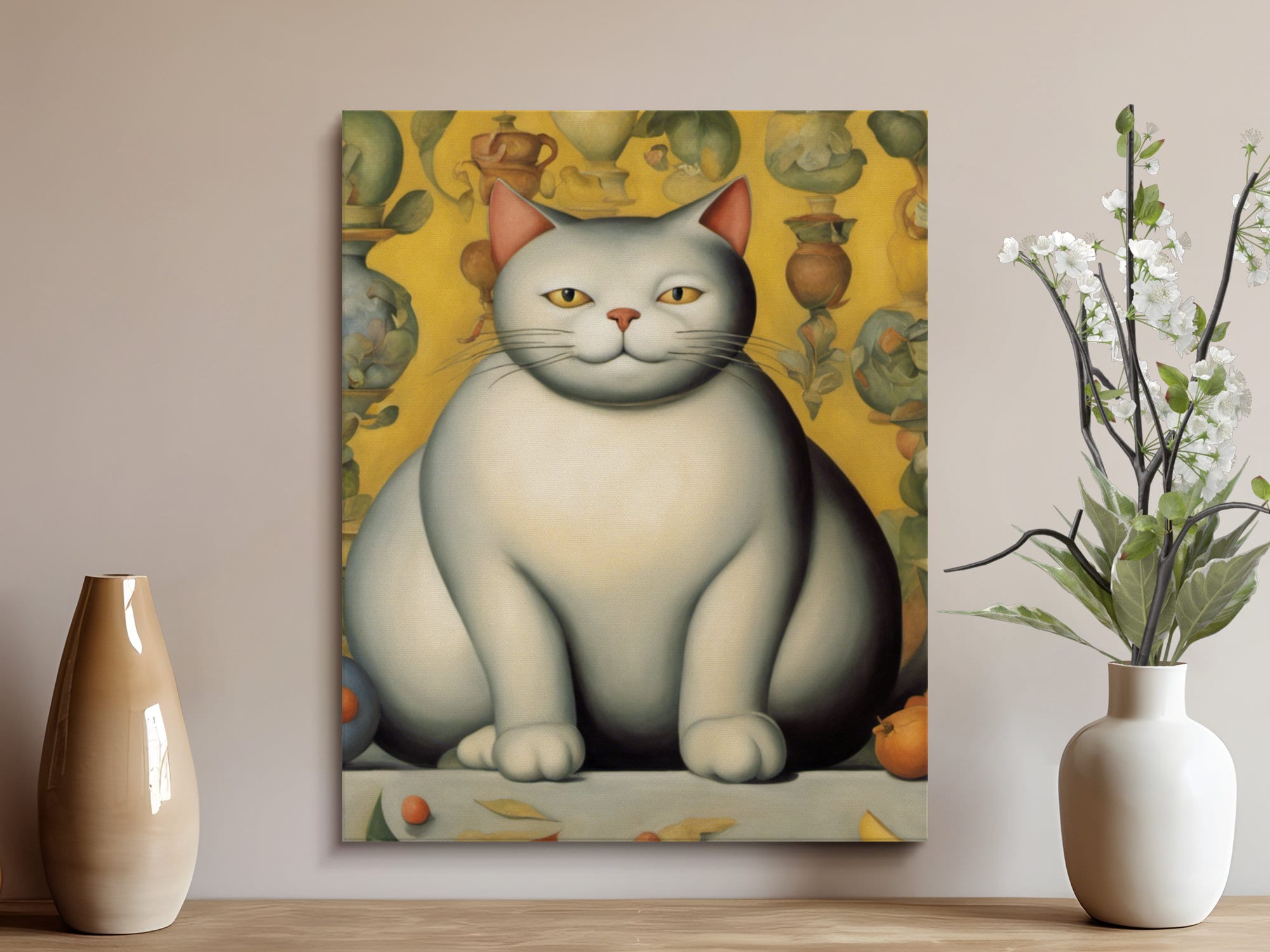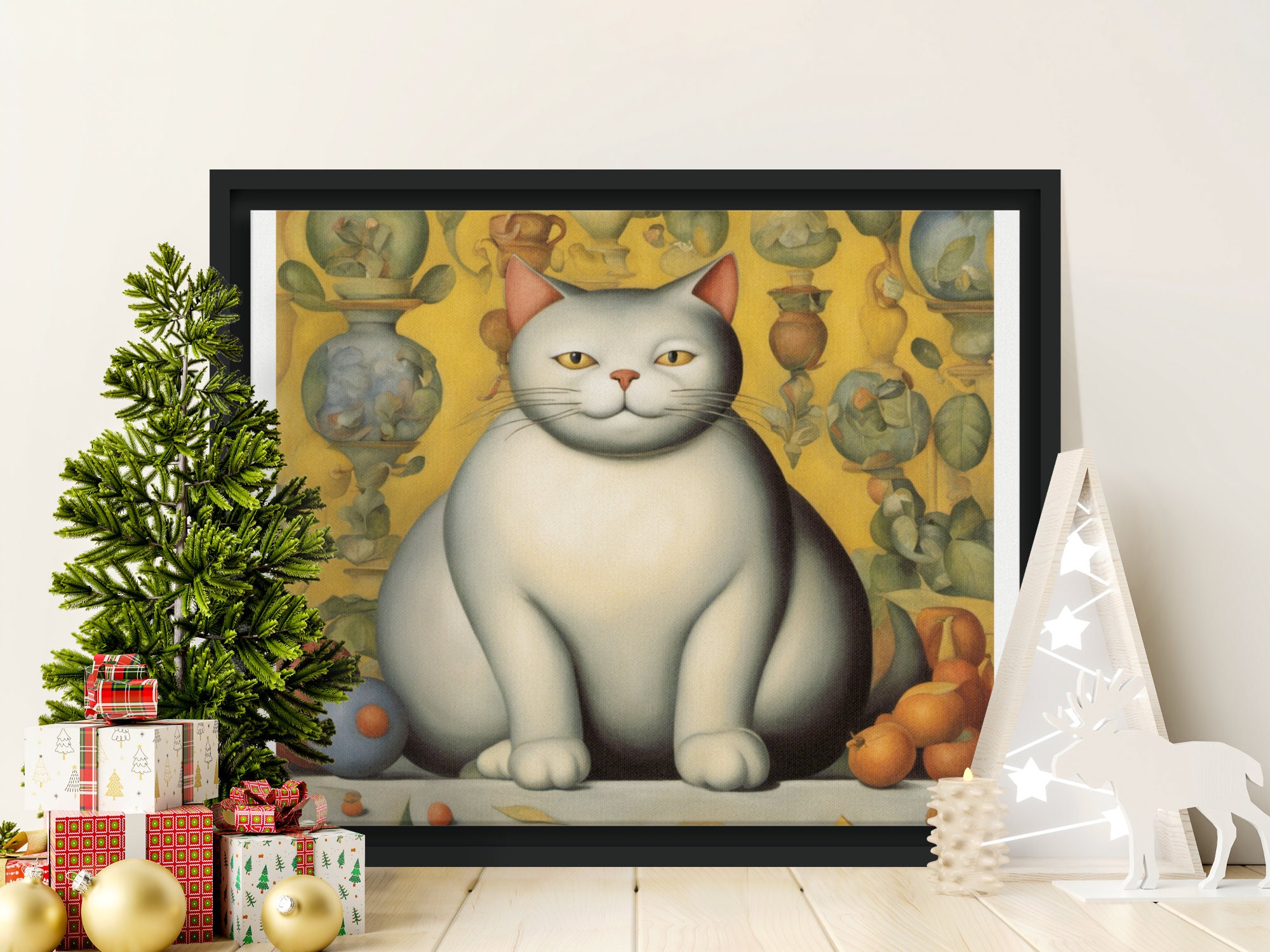 Fernando Botero Inspired Cat Canvas Print, Funny Cat Lover Gift (Digital Download)