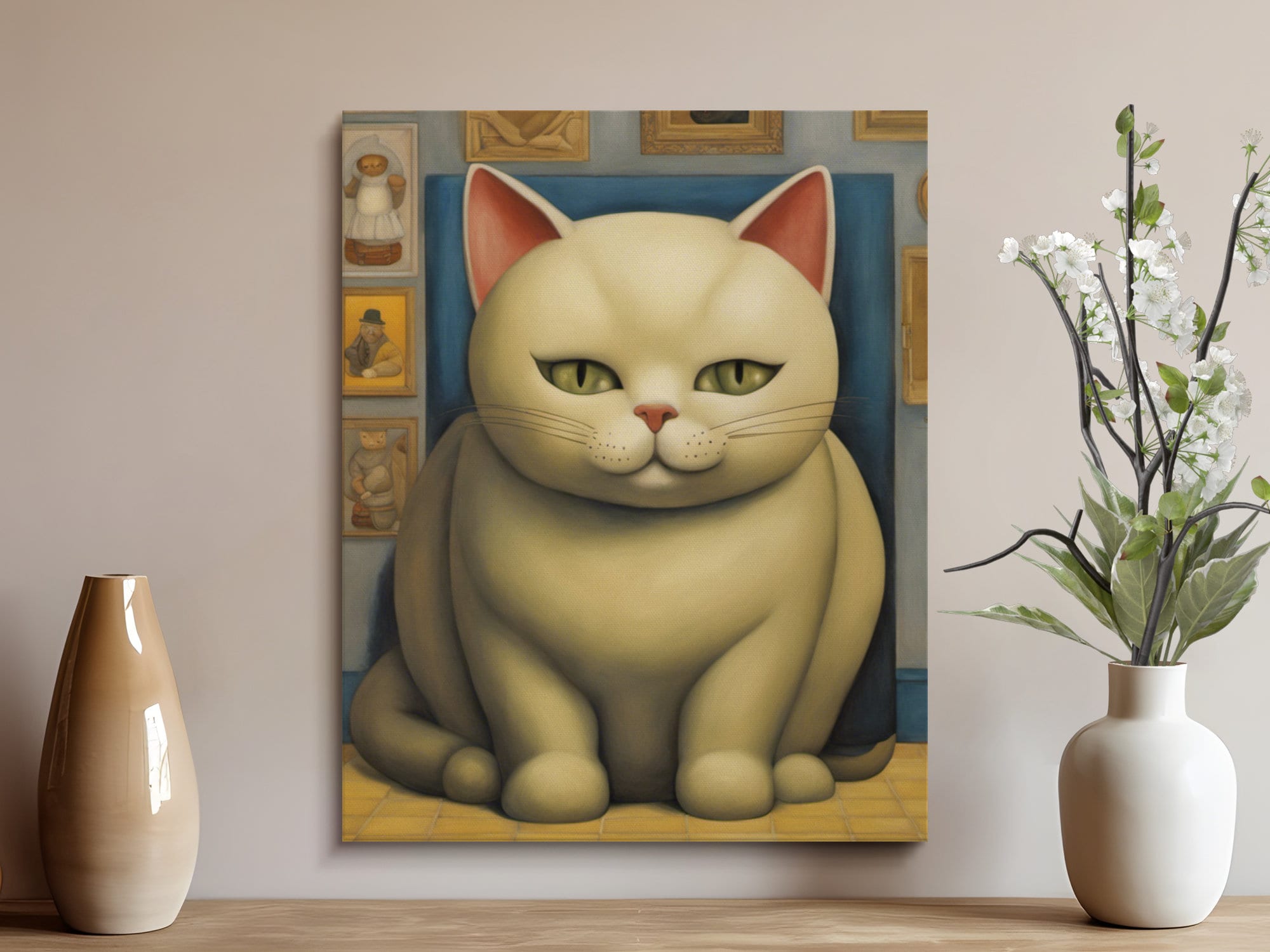 Fernando Botero Inspired Cat Canvas Print, Funny Cat Lover Gift (Instant Download)