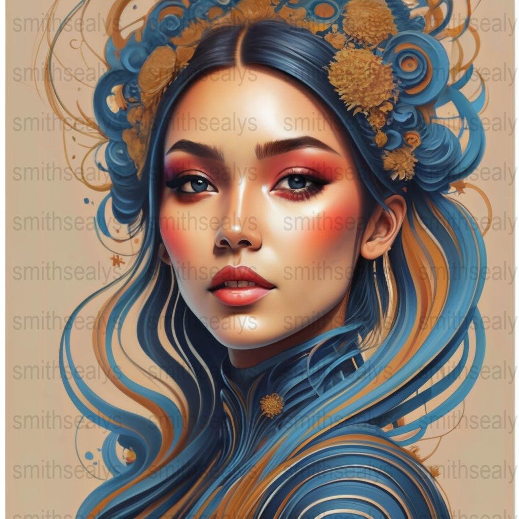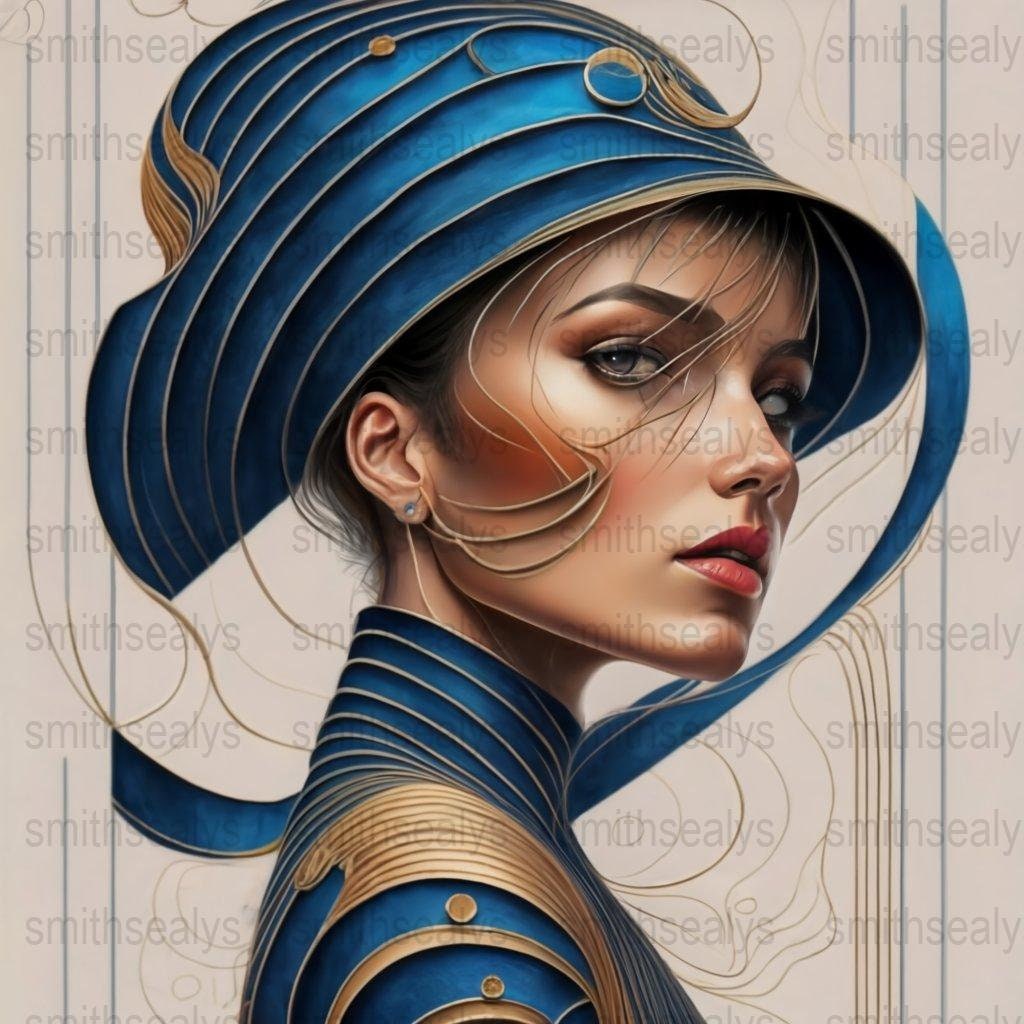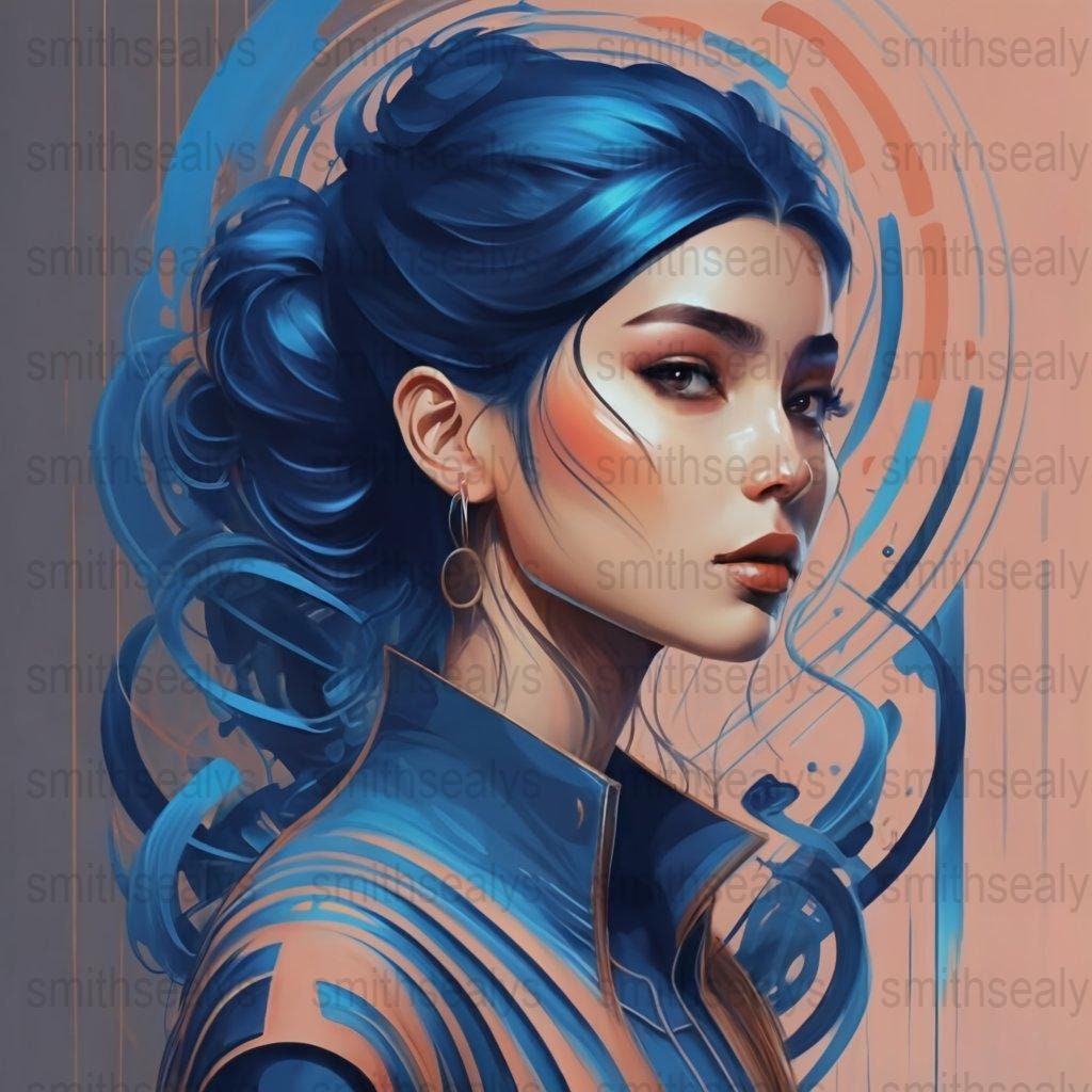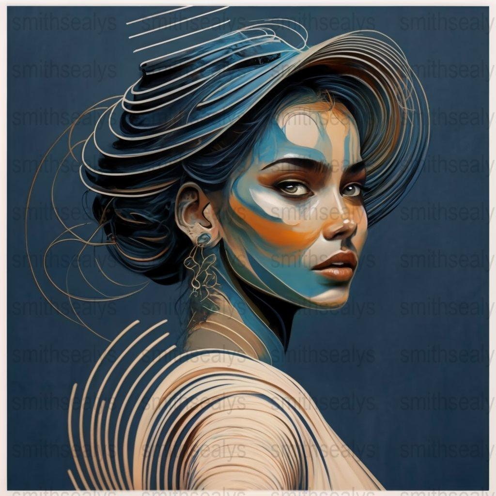 Abstract Navy Blue Woman Portrait Art | Printable Gallery Wall Print (Digital Download)