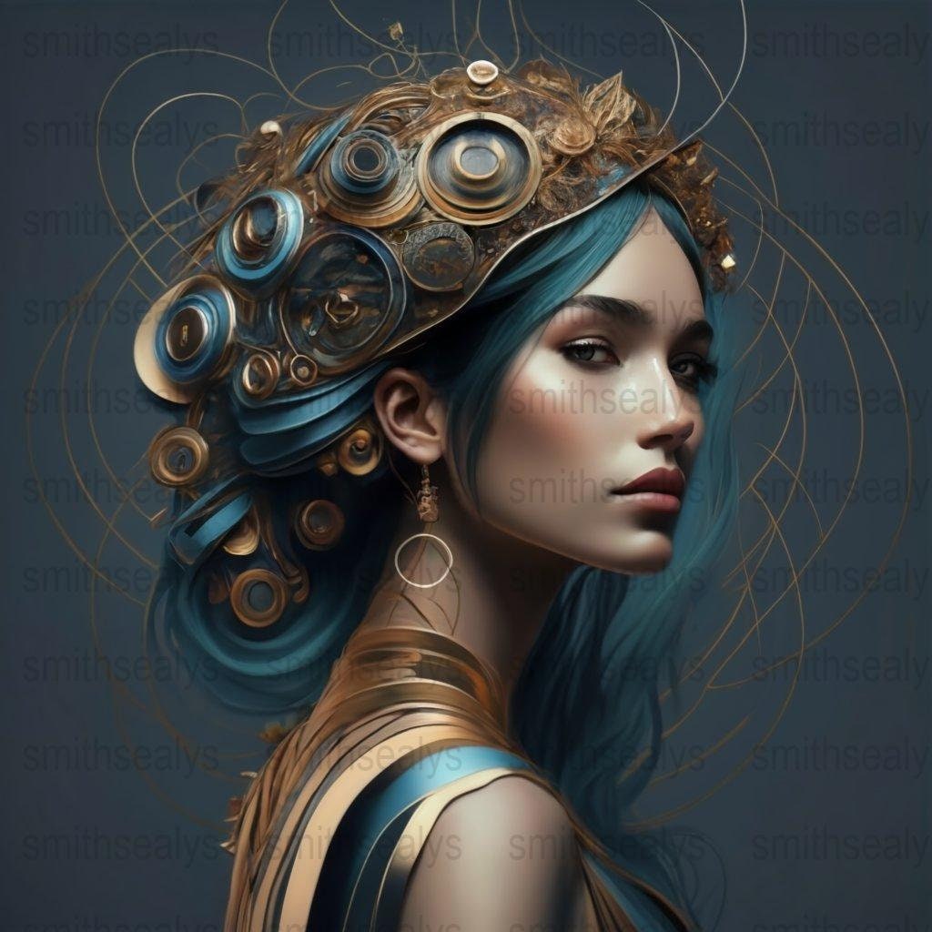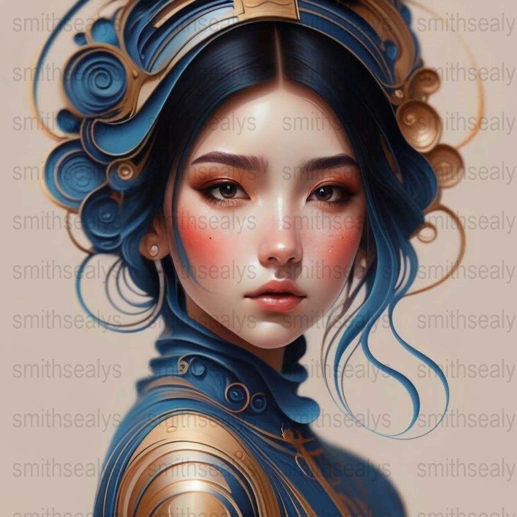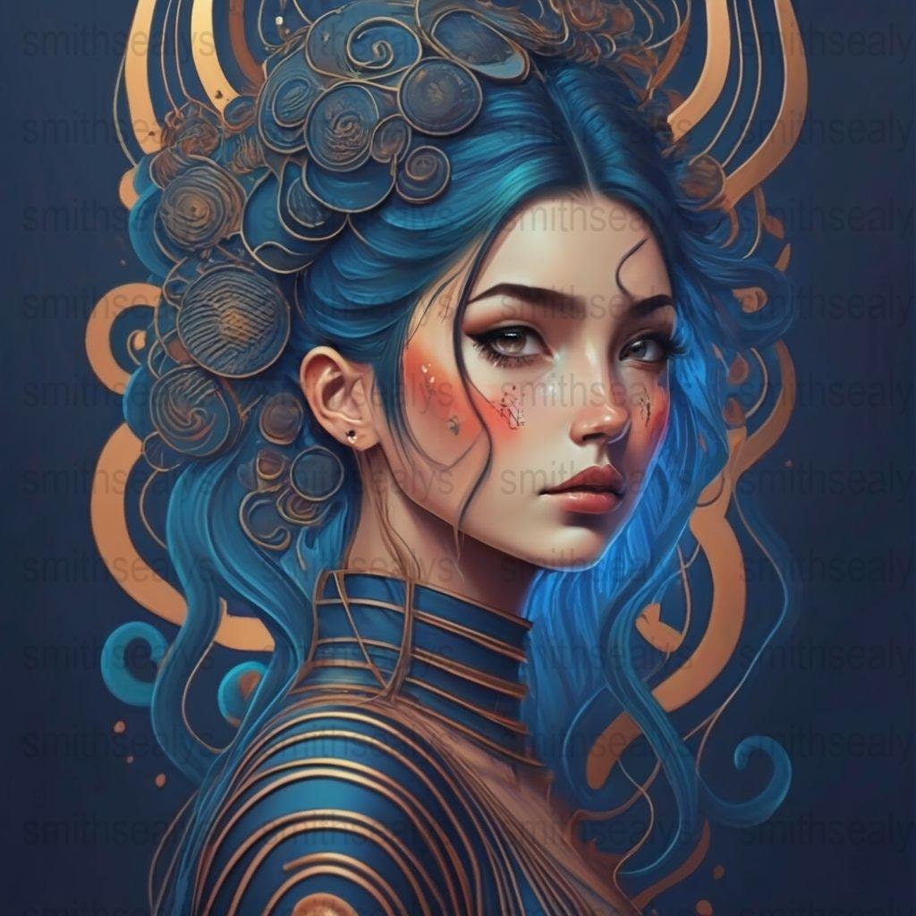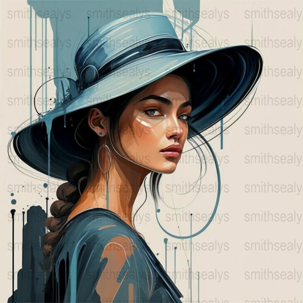 Abstract Navy Blue Woman Portrait Art | Printable Gallery Wall Print (Digital Download)