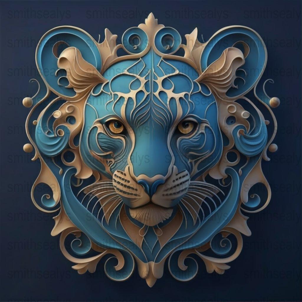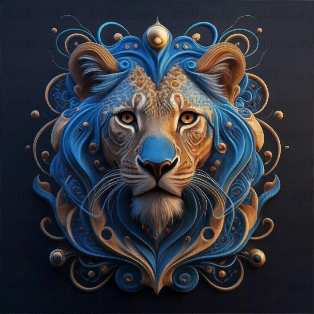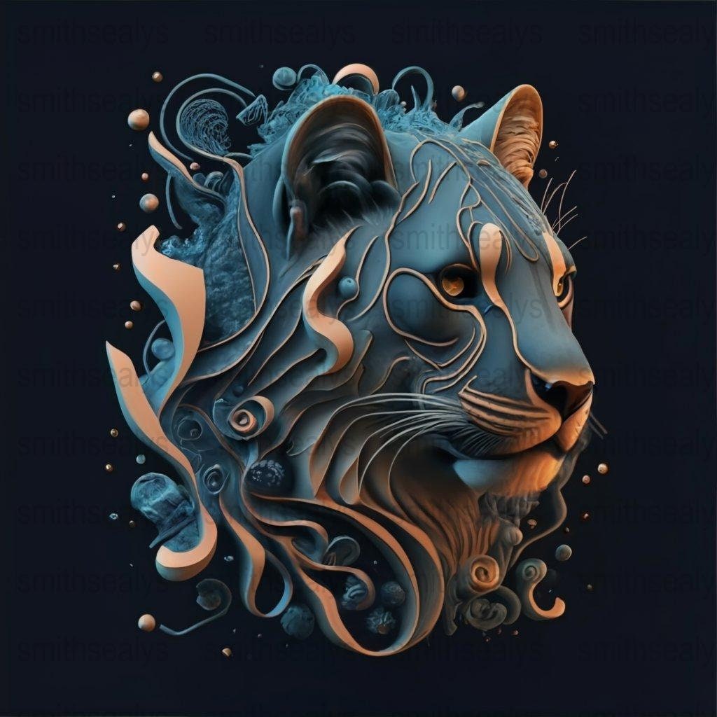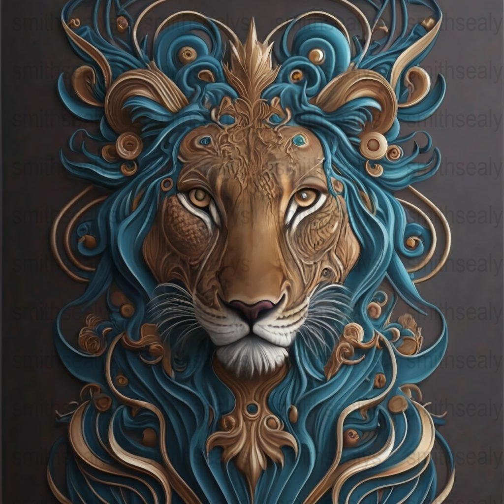 Navy Blue Lion Art Print | Modern Abstract Animal (Digital Download)