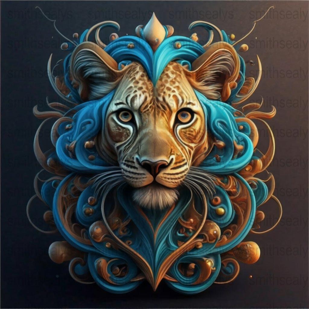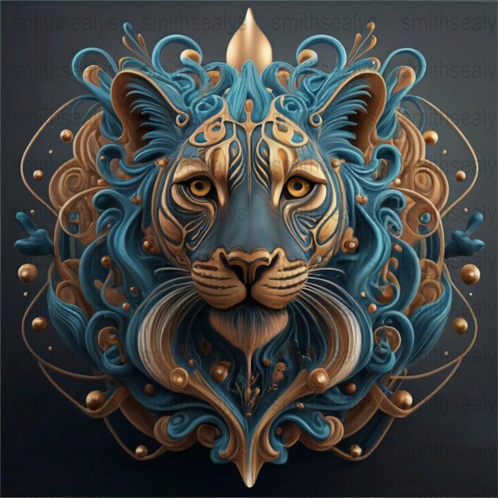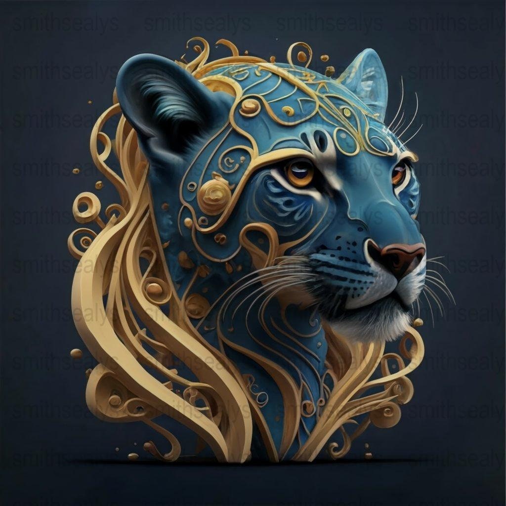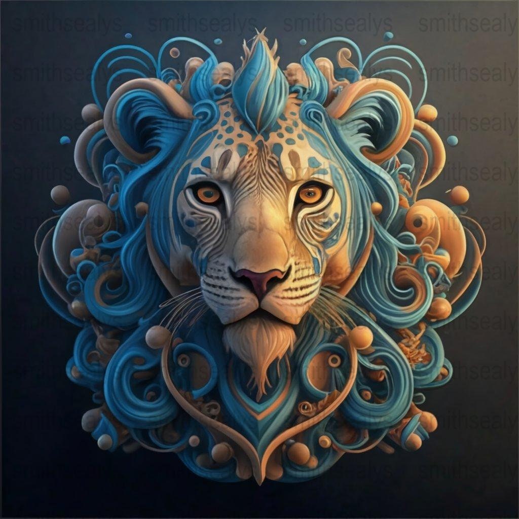 Navy Blue Lion Art Print | Modern Abstract Animal (Digital Download)