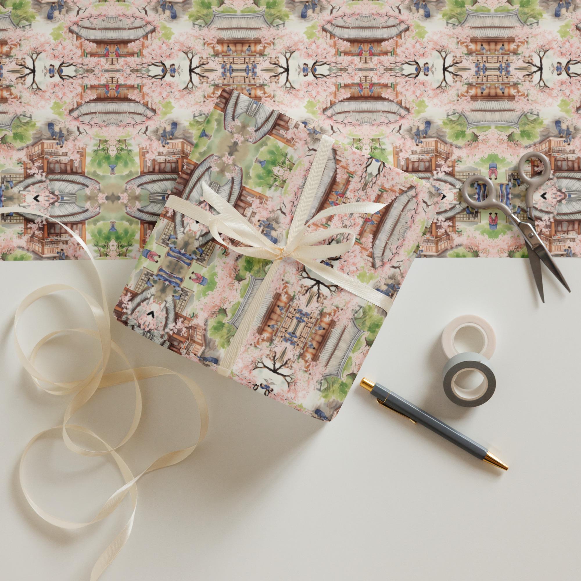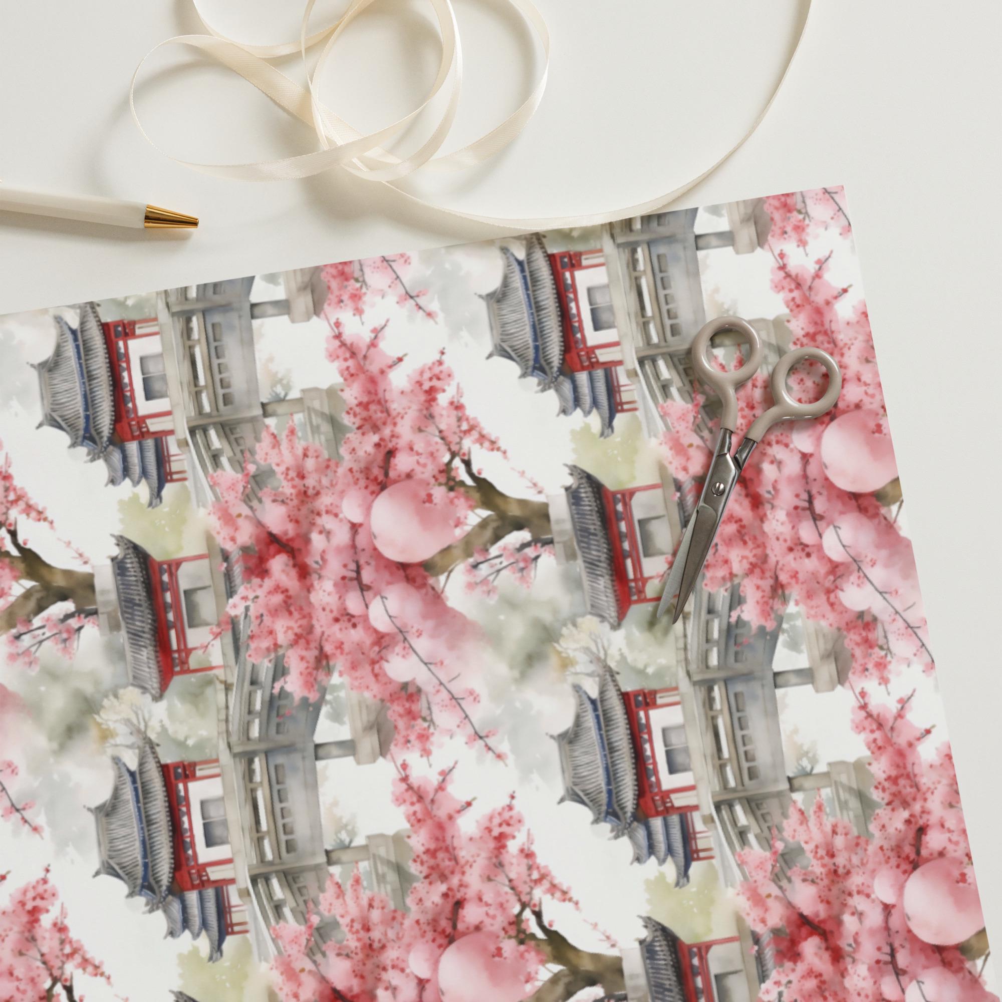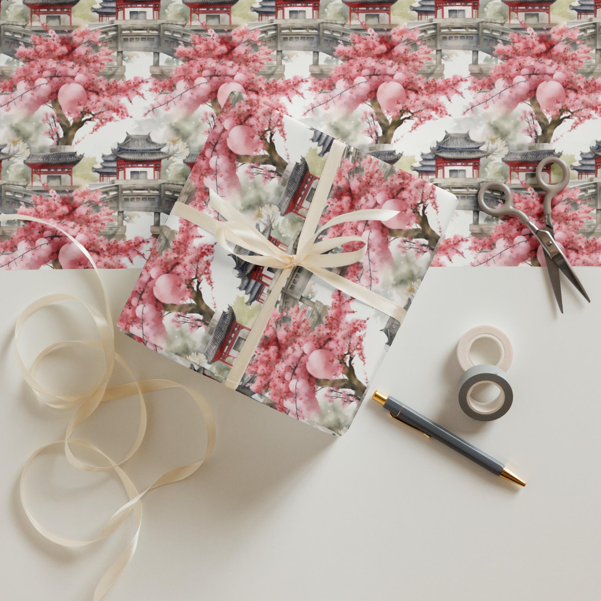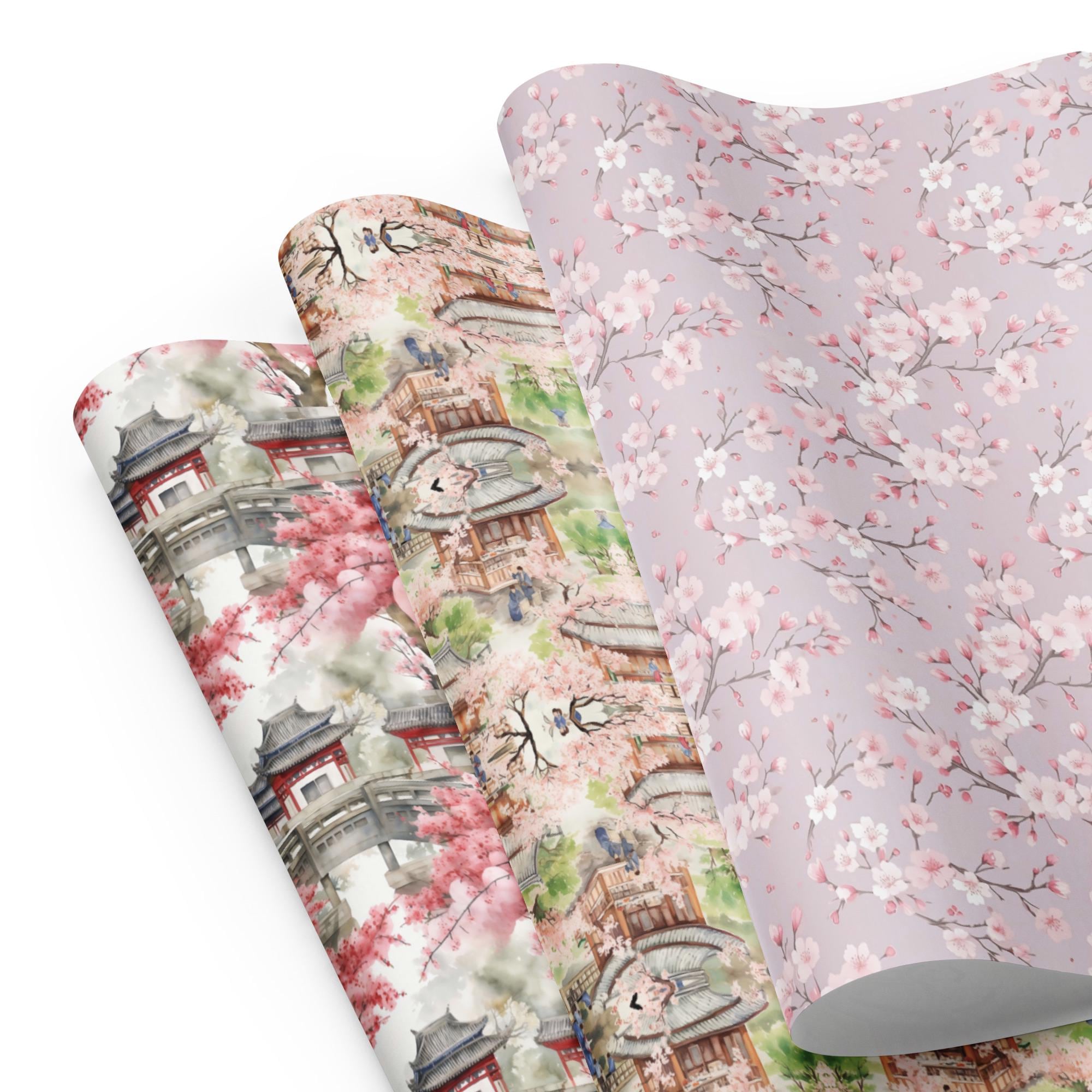 Chinese Patterns, Asian Gift Wrap, Wrapping paper sheets, Pink blossoms, Cherry Blossoms, Pink Floral Paper, Wrapping Paper