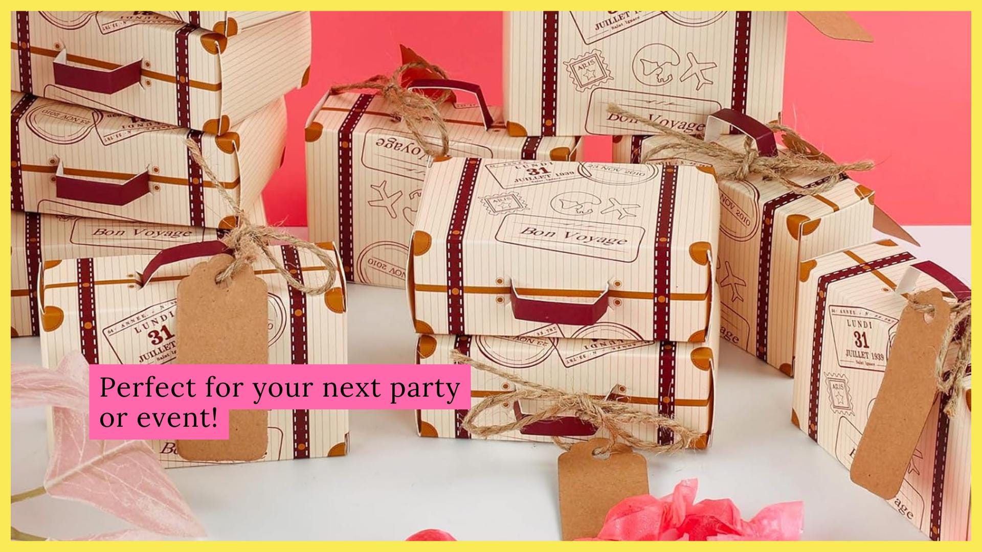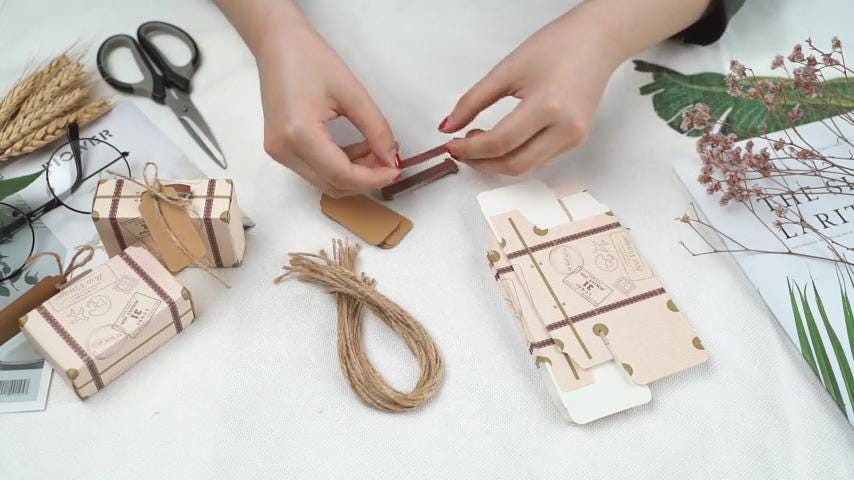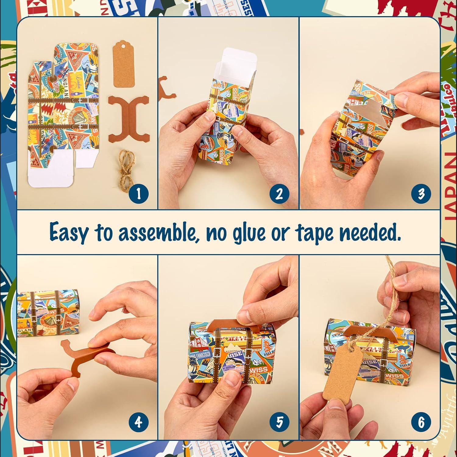 What You’ll Receive:** Each set includes 50 mini suitcase boxes, 50 kraft tags, and 50 pieces of jute twine. These boxes are easy to assemble and practical for filling with love and care. (Every part is hand-wrapped with attention. If anything is missing, reach out to us, and we'll make it right with a refund.)