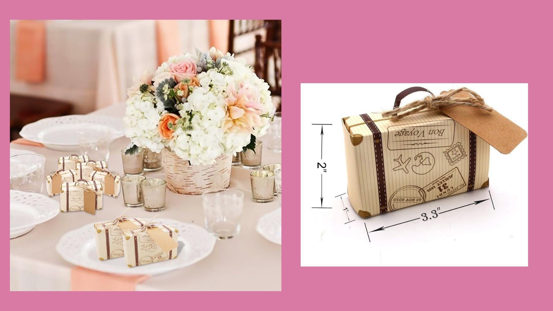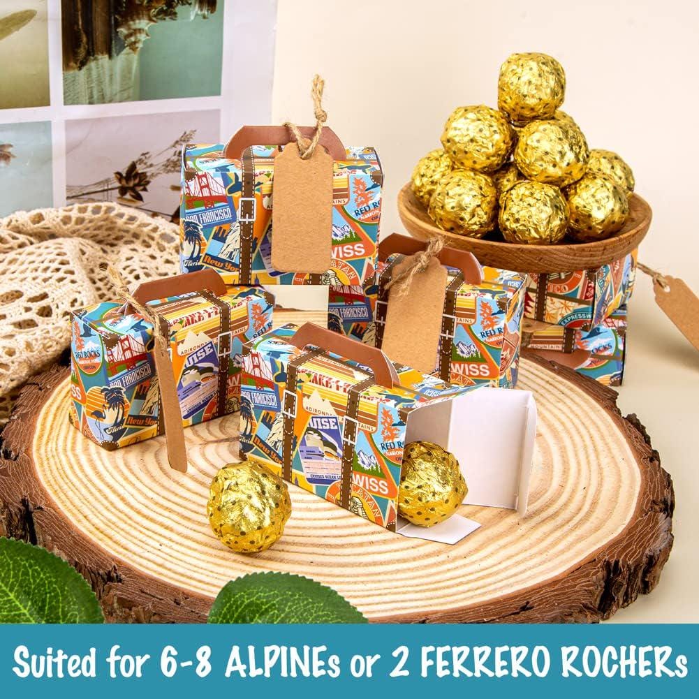 Unique Features:** Each suitcase box comes with a blank kraft tag, giving you the opportunity to write a special note or thank you message to your guests, adding a personal and meaningful touch to your event.