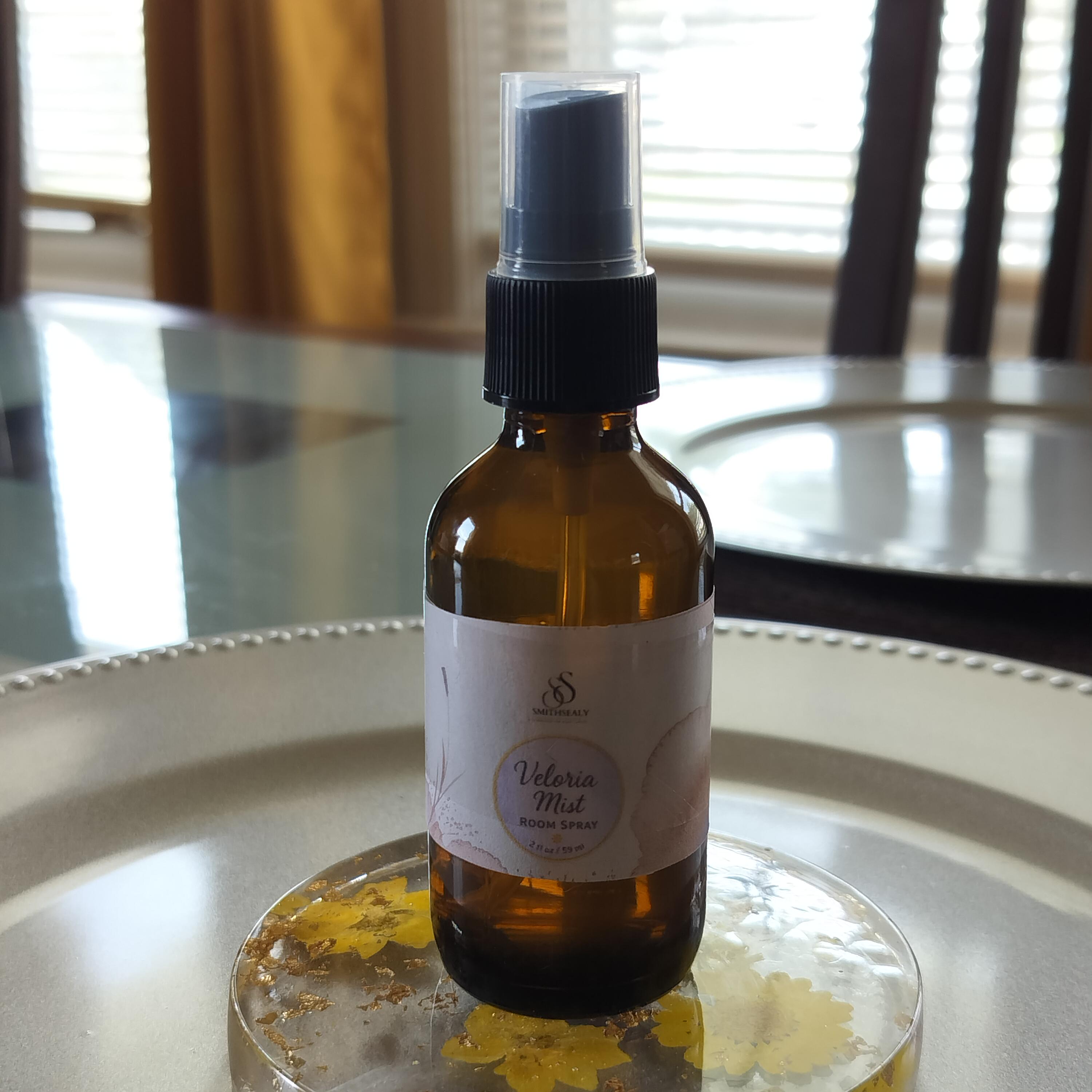 Veloria Mist turns any room into a serene retreat. Hand-poured in small batches, this natural room spray blends sparkling bergamot, creamy coconut, and lush jasmine over soft white woods for an airy yet grounded aroma. Freshen your home instantly with our handmade Room Spray — a natural, long-lasting air freshener designed to uplift any space. Each bottle is hand-poured in small batches using premium fragrance oils and skin-safe ingredients for a clean, comforting scent experience.