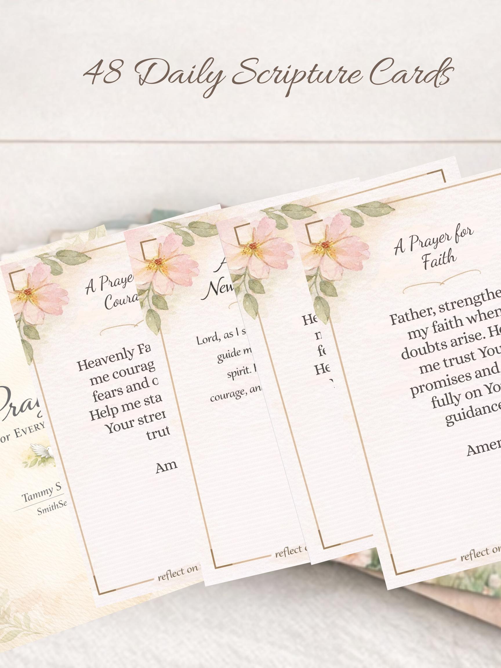 Each card features a meaningful prayer theme paired with scripture, perfect for daily devotionals, prayer time, gifting, or quiet reflection.